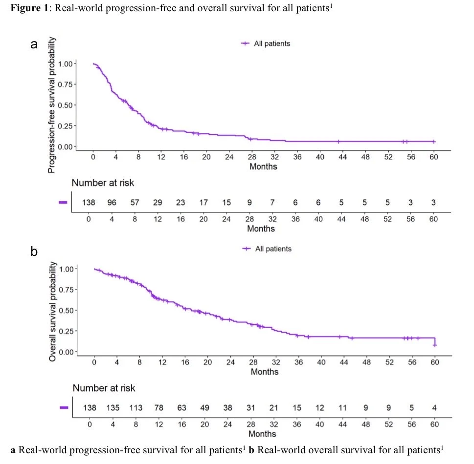 Outcomes varied by line of therapy, HR status, and agent. HR+ patients had longer PFS vs TNBC (7.3 vs 4.5 mo). Earlier-line use showed better outcomes. Despite frequent later-line use, results were broadly consistent with pivotal trials → supports effectiveness in routine practice. Real-world data reinforce PARP inhibitors as a valid standard in gBRCA-mutated HER2- ABC.”