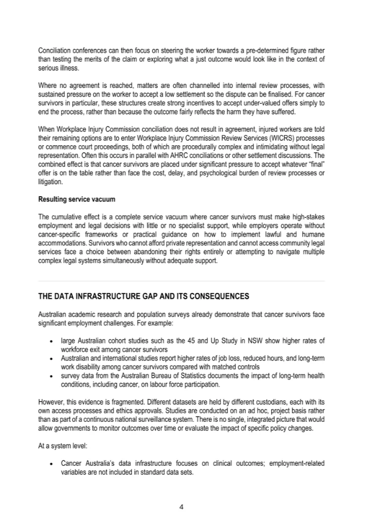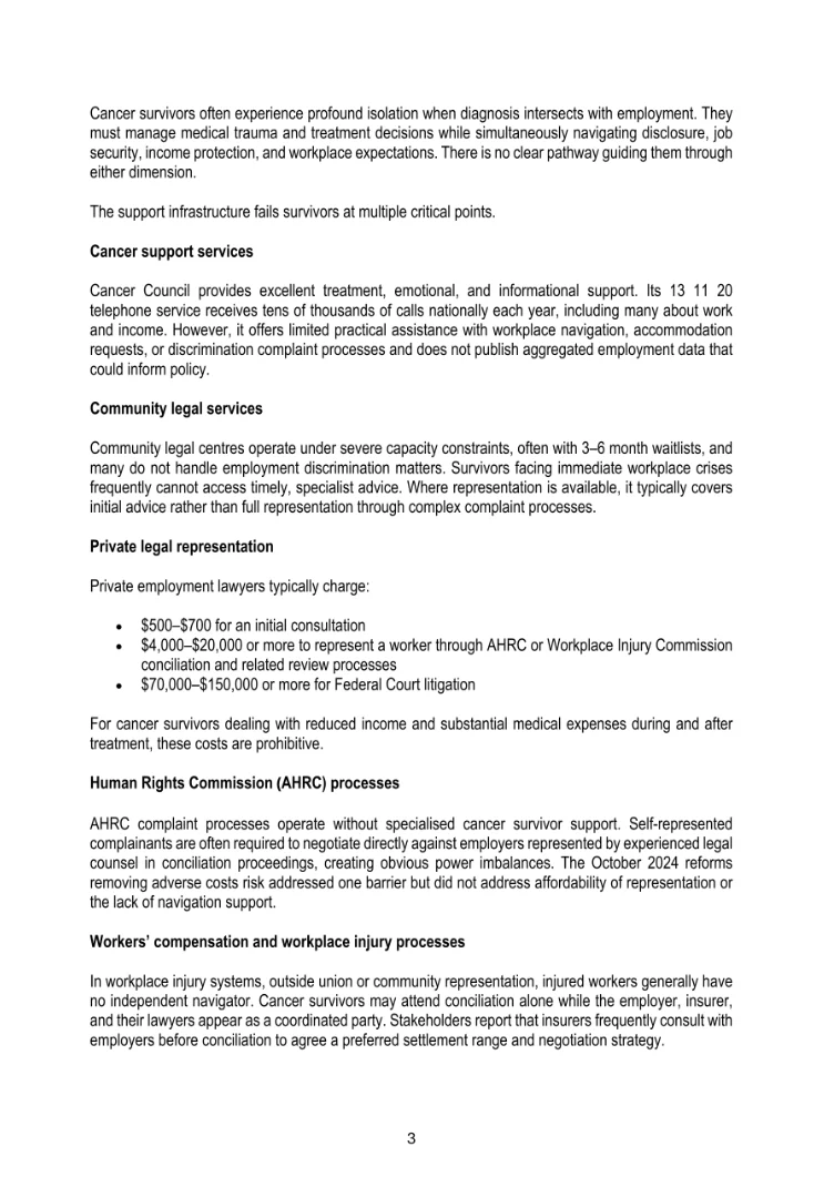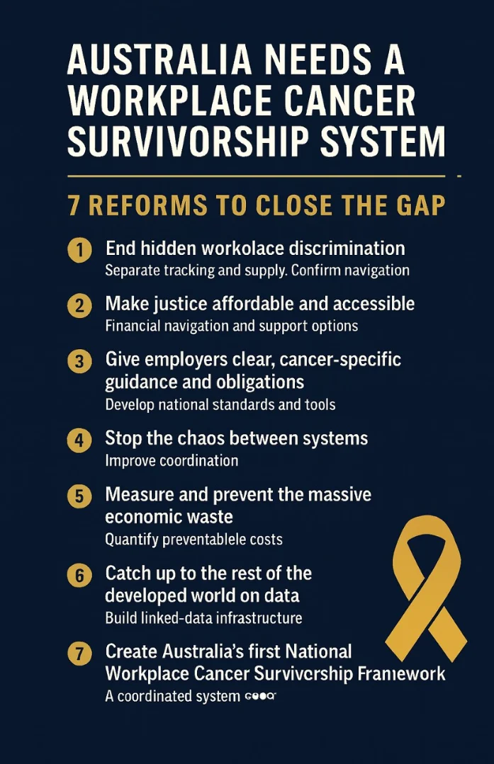 Funded navigation and support so survivors aren’t priced out of conciliation or court. - Give employers clear, cancer-specific guidance and obligations.