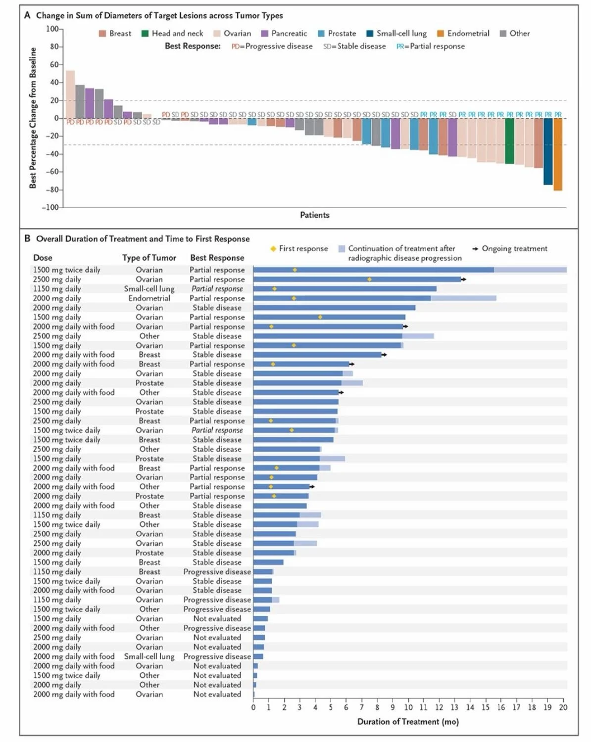 - Tumor shrinkage across ovarian, breast, lung, prostate, and other cancers