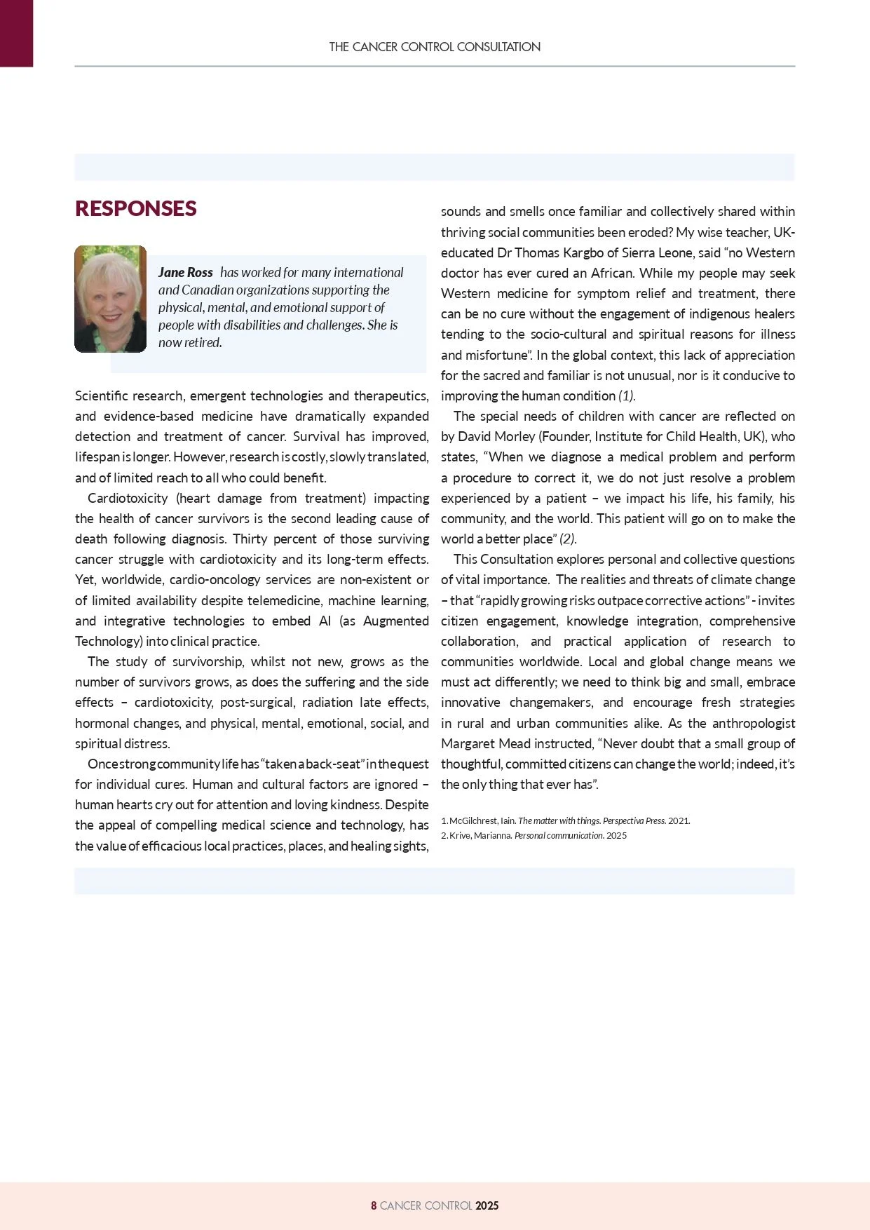 “My contribution to the annual Cancer Control 2025 has just been published, alongside leading professors, scientists, and cancer experts.