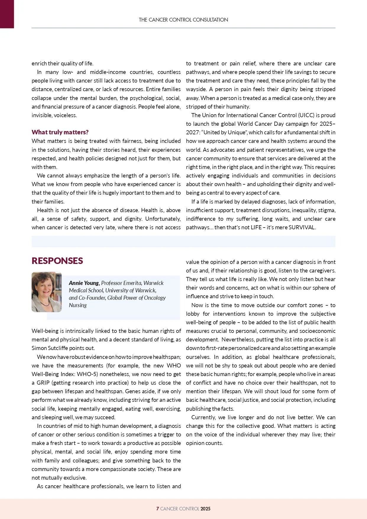 This year, the publication introduced several new features, including a consultation section, a thought piece to which selected contributors are invited to respond. The theme of this year’s consultation is: ‘Health and Well-being: What Matters and Whose Opinion Counts?