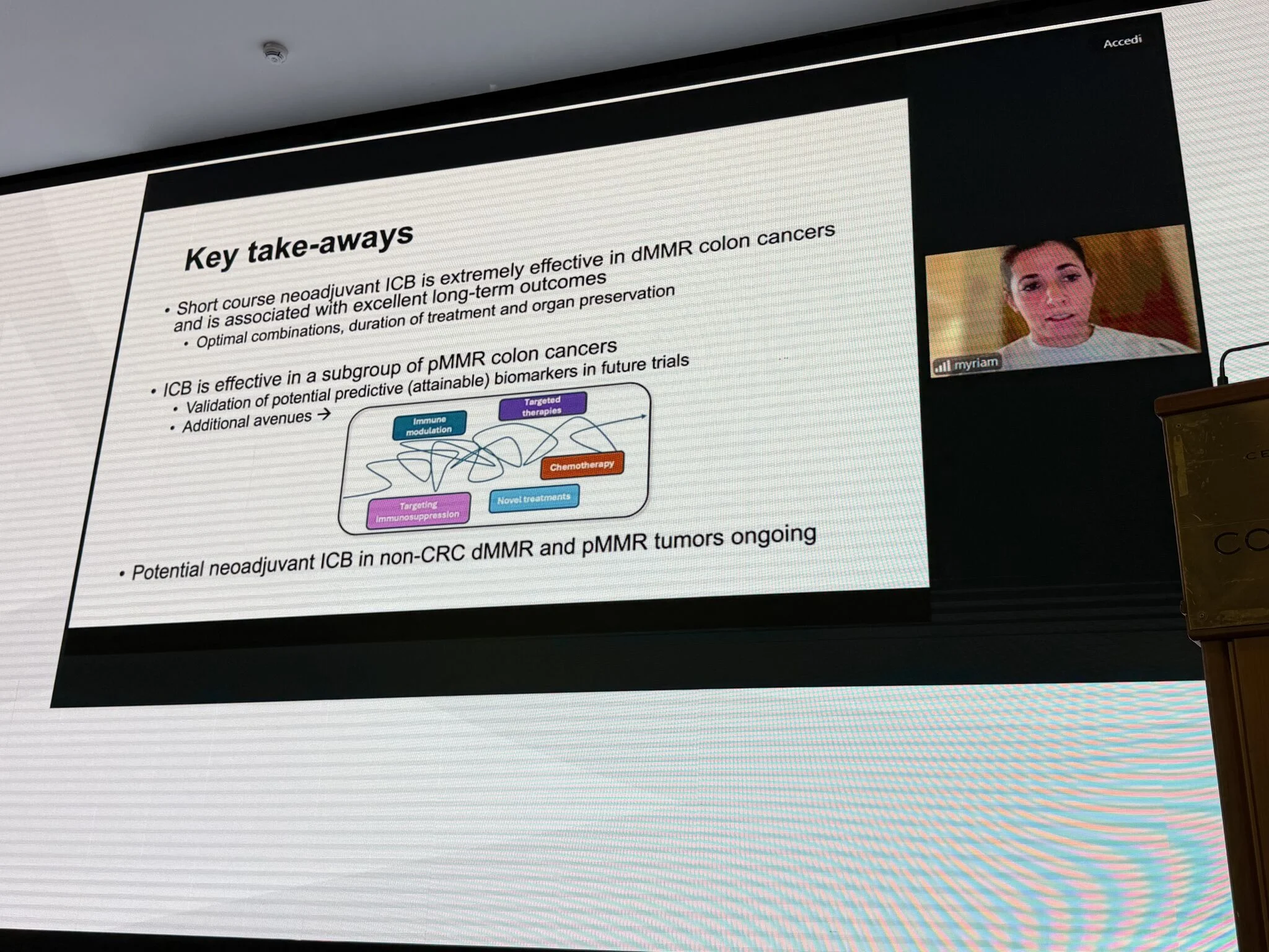 - Short course neoadjuvant ICB is extremely effective in dMMR colon cancers and is associated with excellent long-term outcomes