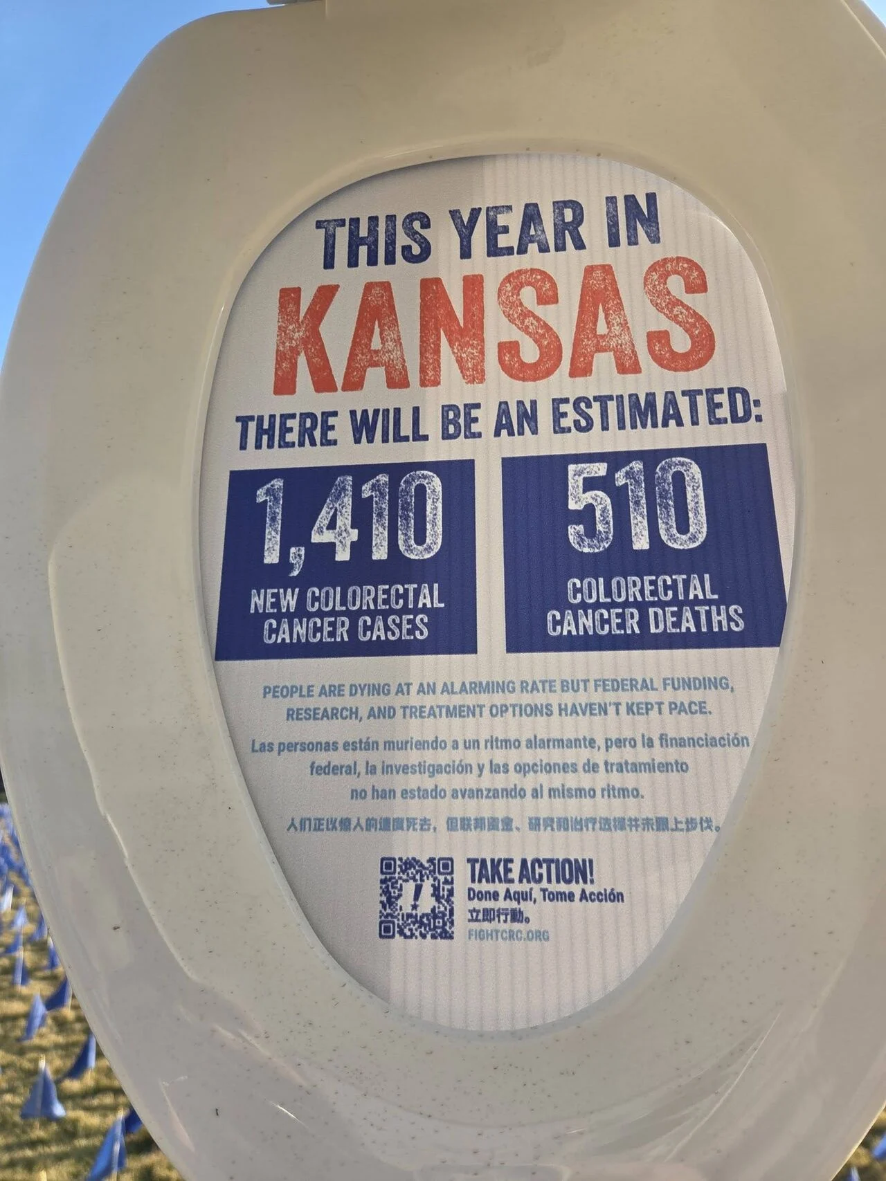 We put out more than 27,000 blue (the color of colon cancer) flags on the National Mall, representing the number of lives that can be saved from this disease by 2030 with proper research funding. It was a sobering sight.