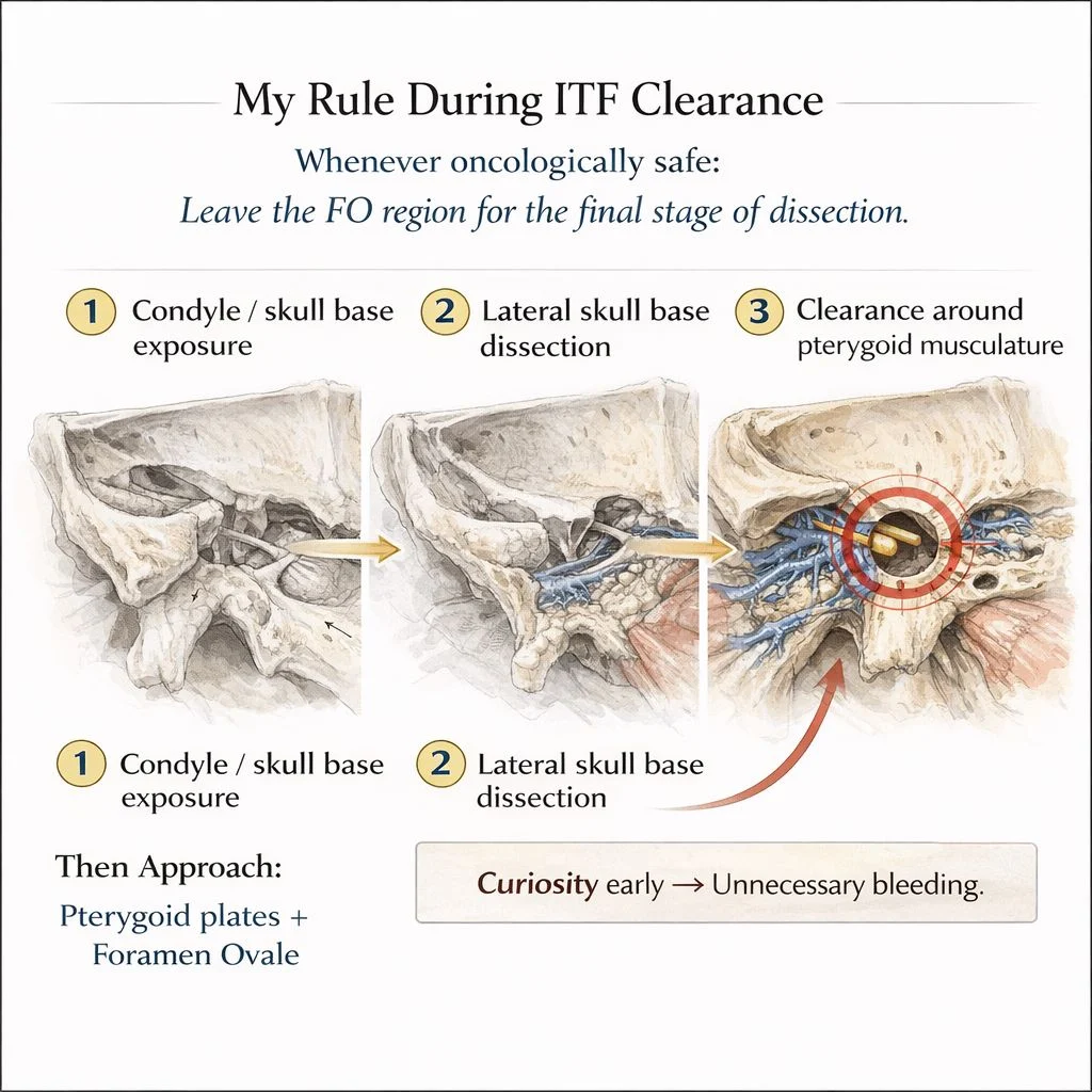“During a recent extensive infratemporal fossa (ITF) clearance as part of composite resection, I was reminded of an important surgical principle: