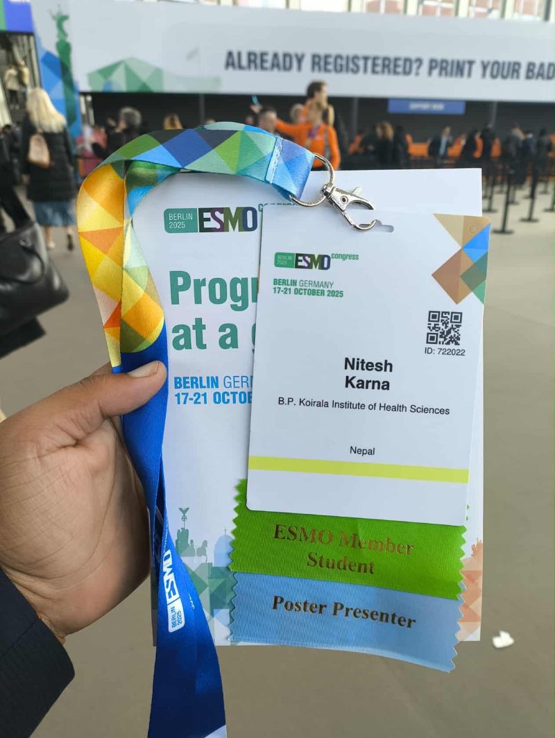 “Proud of Nitesh Kumar Karna , the recipient of this year’s Anita Gyawali-Ganesh Gyawali Health Research Award. The award helped Nitesh present his research at ESMO 2025 Annual Congress in Berlin, Germany. Wishing him continued success in his career.”