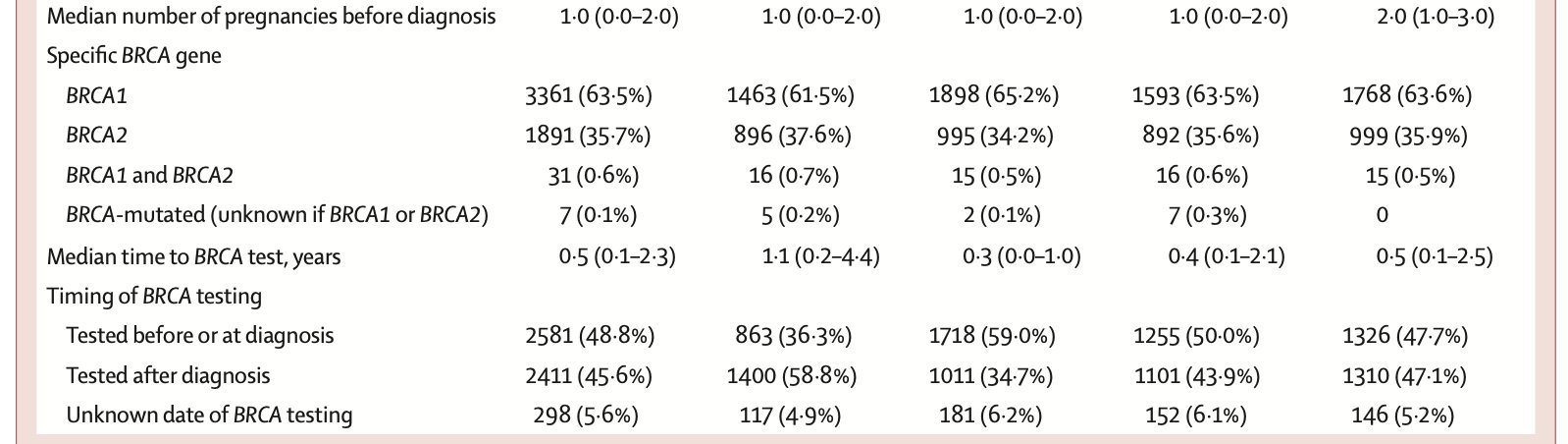 Important when counselling on the survival benefit and timing of prophylactic mastectomy vs. delayed approach after childbearing. (Blondeaux et al., Lancet Oncol).