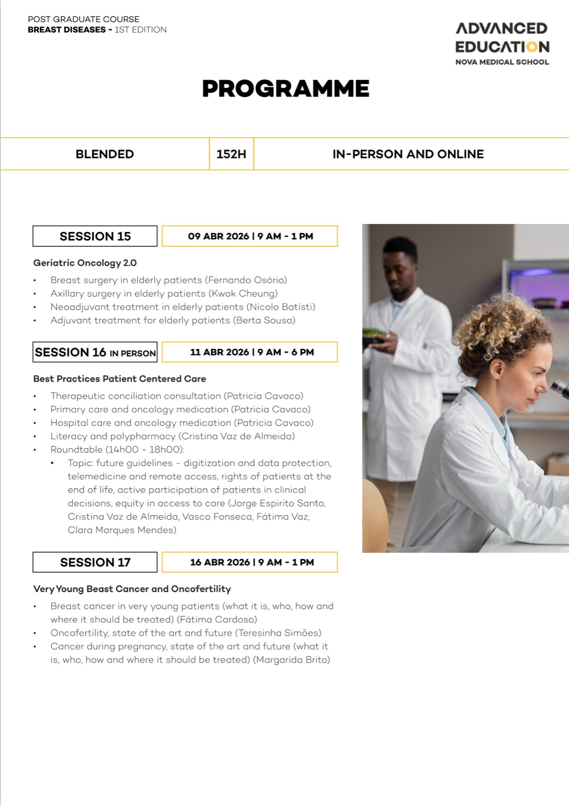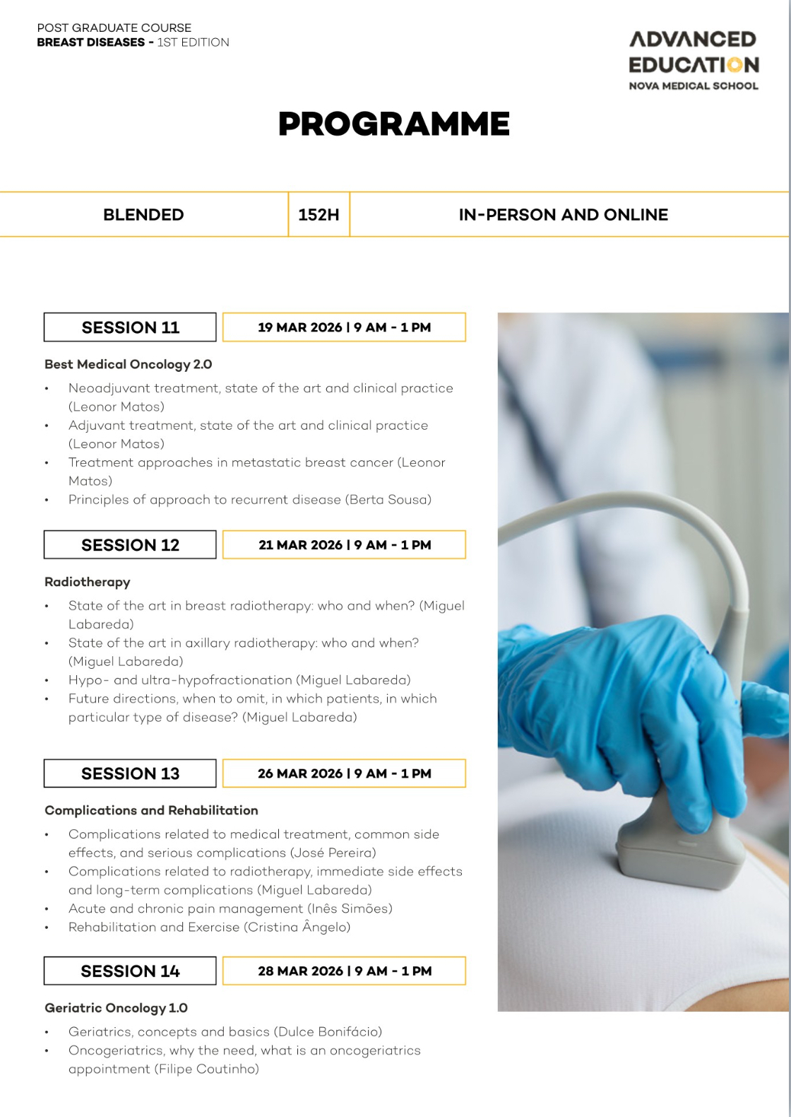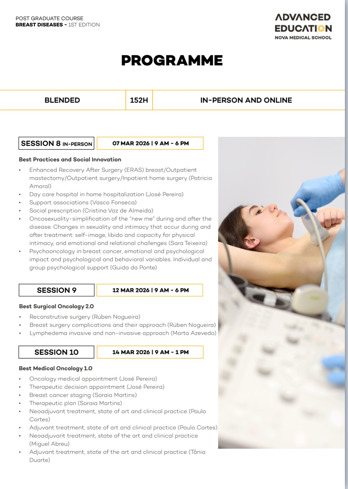 Advanced Training in Breast Diseases with NOVA Medical School – Faculdade de Ciências Médicas and Ahed – Advanced Health Education is a postgraduate program designed specifically for mid-career physicians ready to establish or lead breast cancer units in compliance with European quality standards.