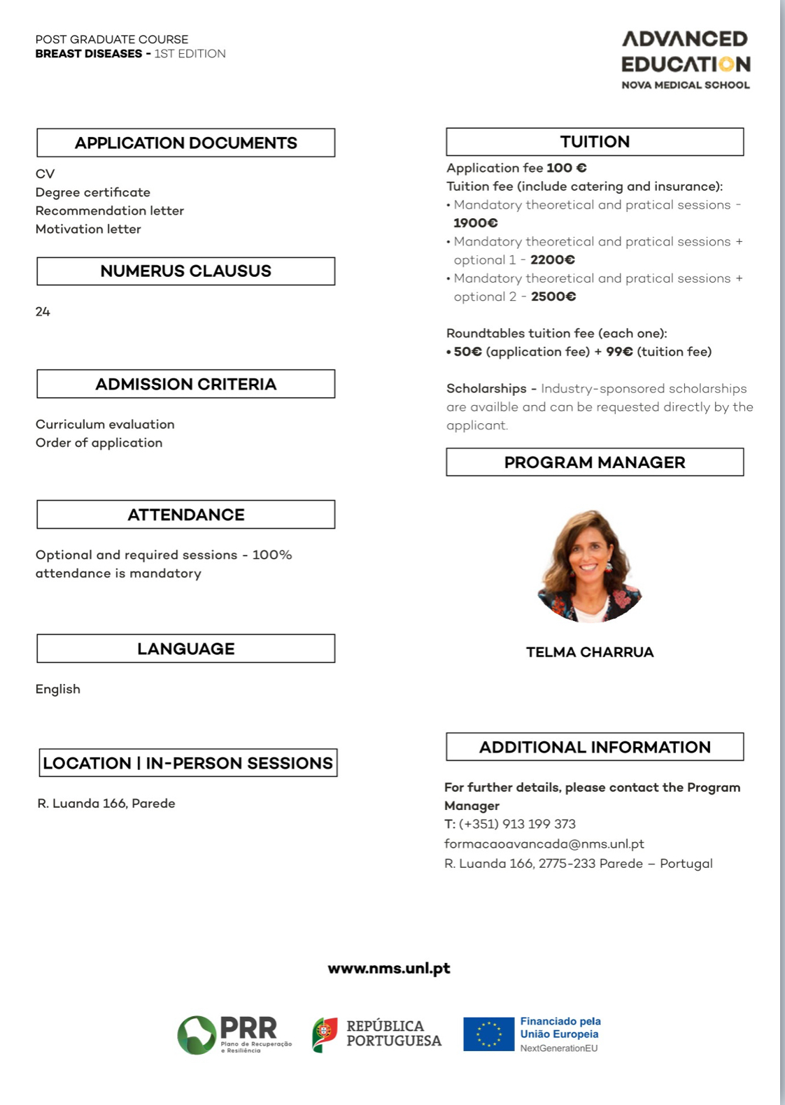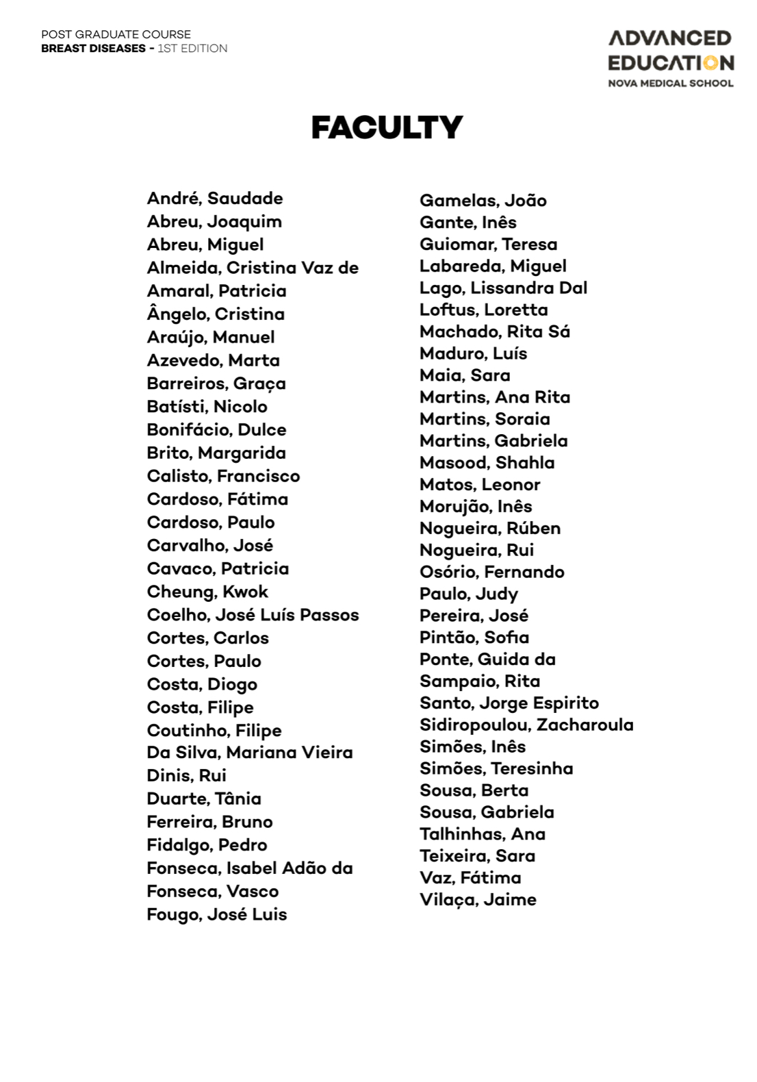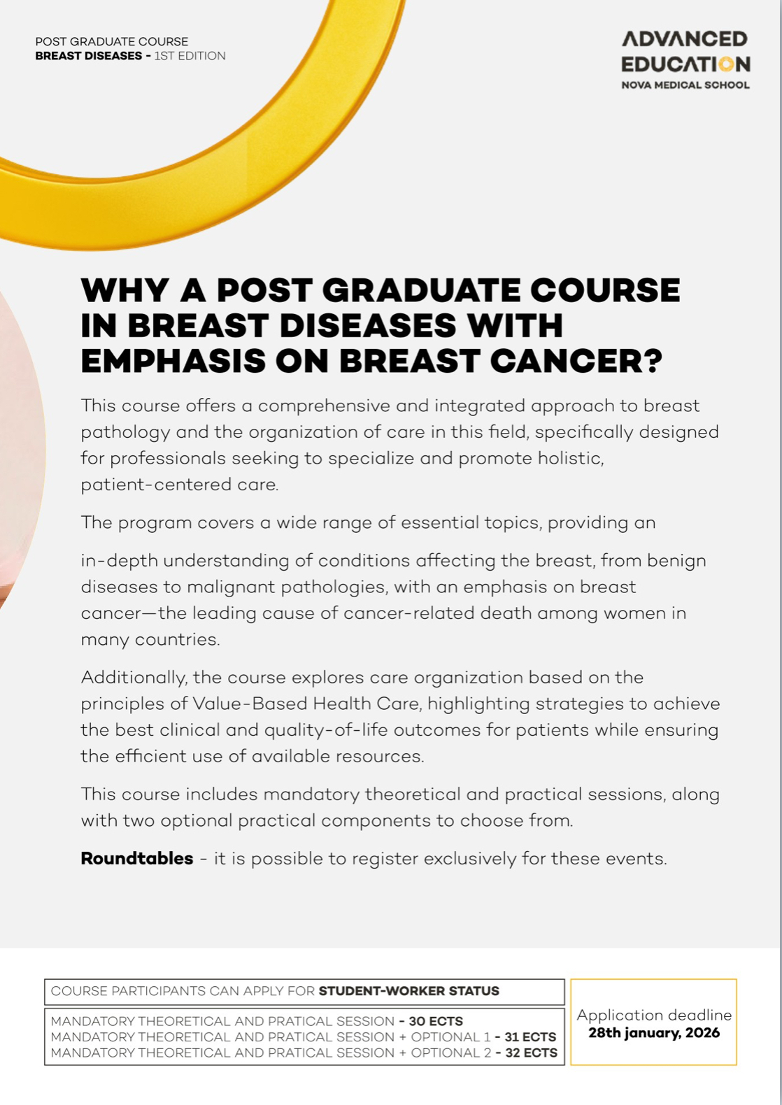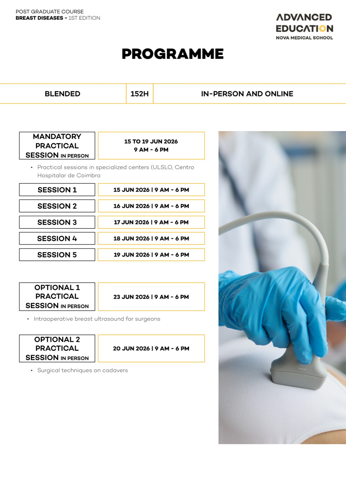 Advanced Training in Breast Diseases with NOVA Medical School – Faculdade de Ciências Médicas and Ahed – Advanced Health Education is a postgraduate program designed specifically for mid-career physicians ready to establish or lead breast cancer units in compliance with European quality standards.