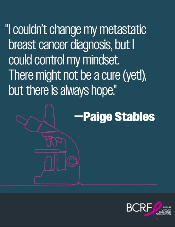 “I couldn’t change my metastatic breast cancer diagnosis, but I could control my mindset. There might not be a cure (yet!), but there is always hope.”