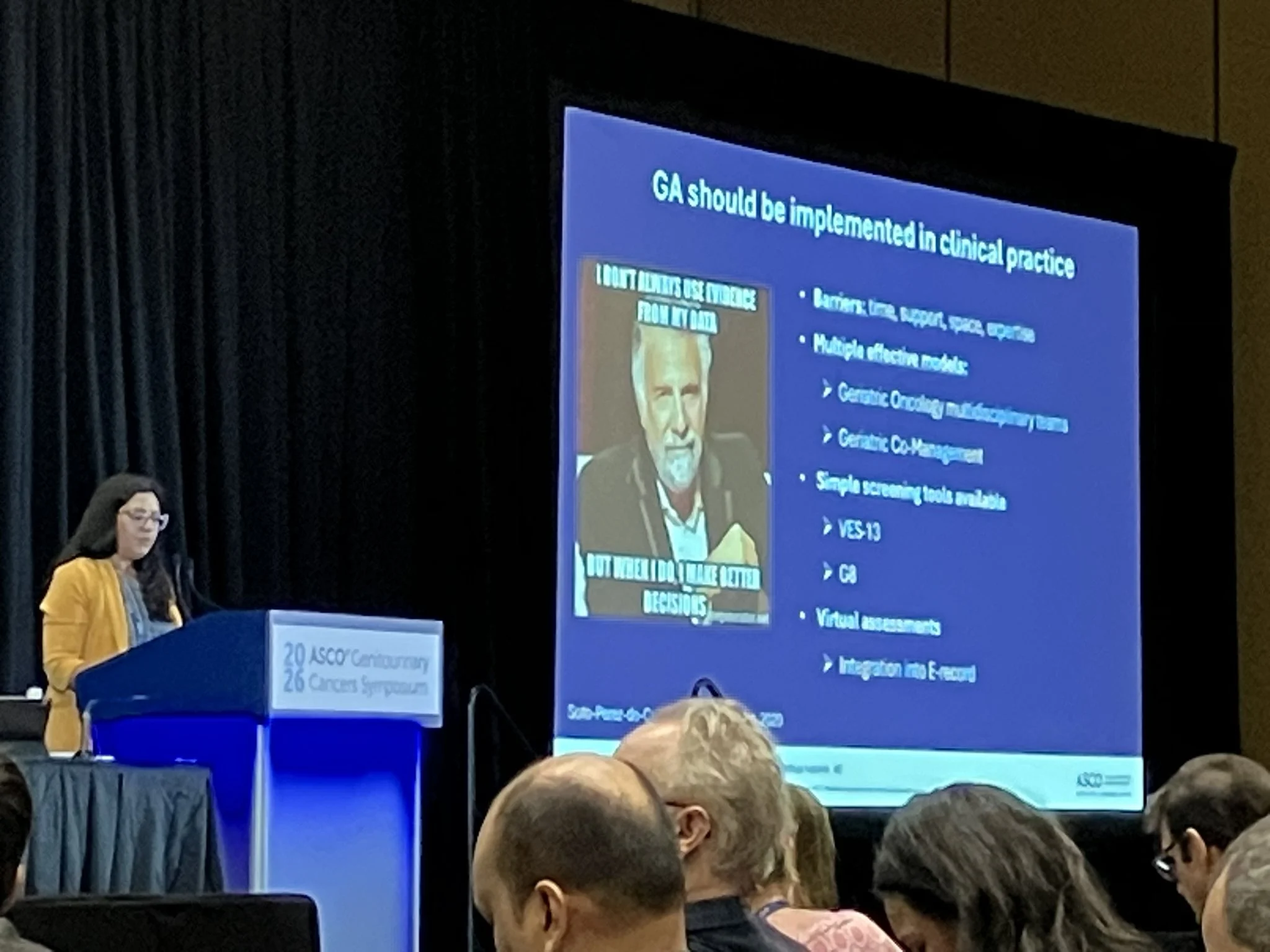 “Brilliant presentation by Sindhuja Kadambi of Wilmot Cancer Institute on the crucial role of geriatric assessment and multidisciplinary care for optimization and personalization of care for older patients affected by GU cancer.