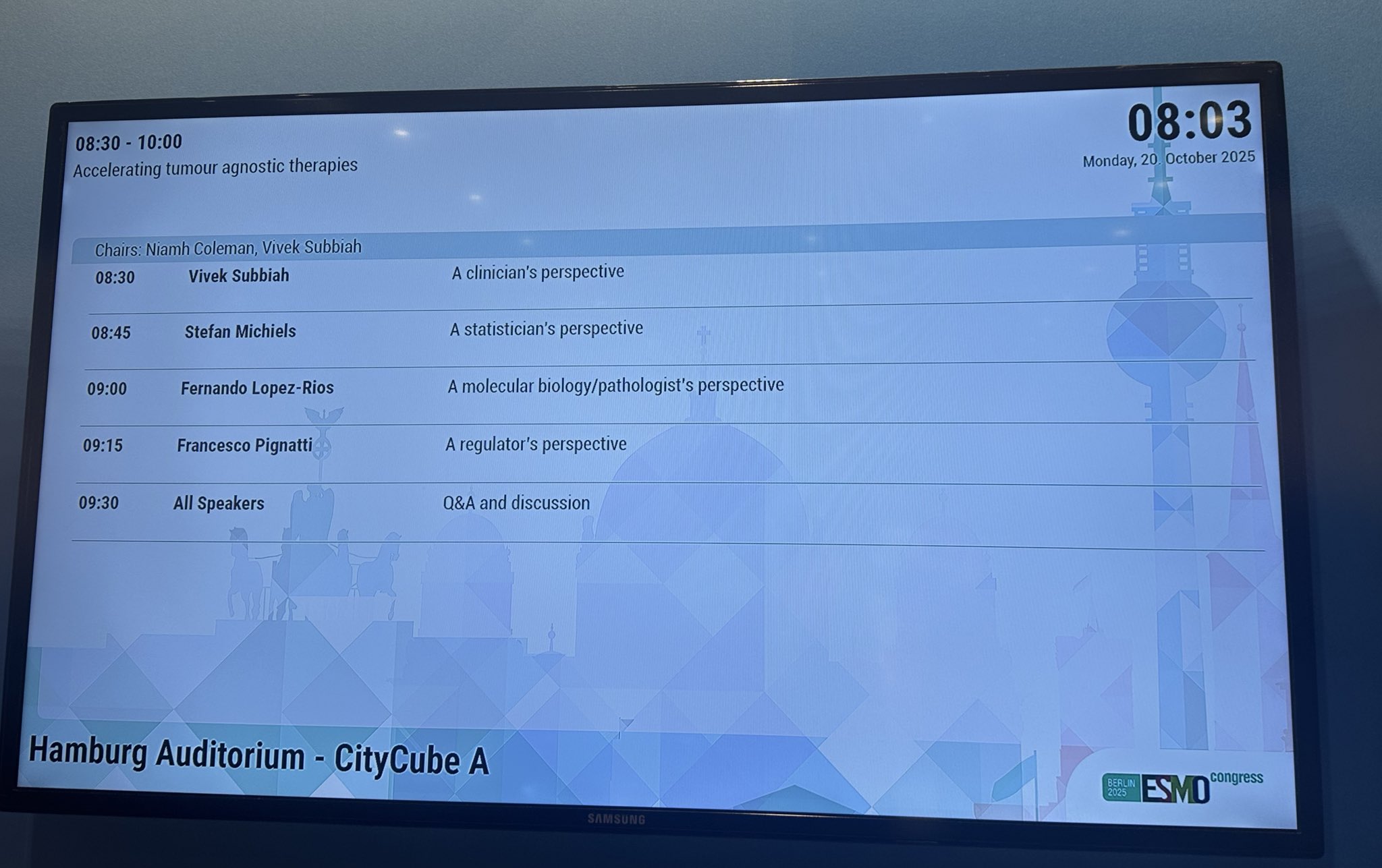ESMO25 lead to Hamburg Auditorium, Berlin, CityCube A the Tumor Agnostic session kicks off in 15 mins! Grab your espresso and stroll over. You don’t want to miss this. Cancer Research Tumor Agnostic POWERHOUSE PERSPECTIVES in 90 mins: