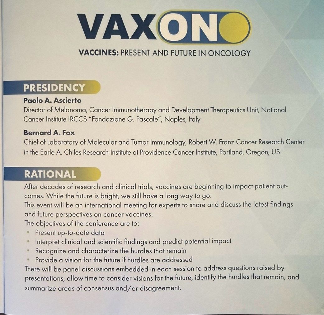 It started with VAXON 2025! It was an honor and great pleasure to organize this program with Paolo A. Ascierto, who was appointed Full Professor of Oncology on the day of the meeting! Congrats again Paolo for this well deserved promotion.