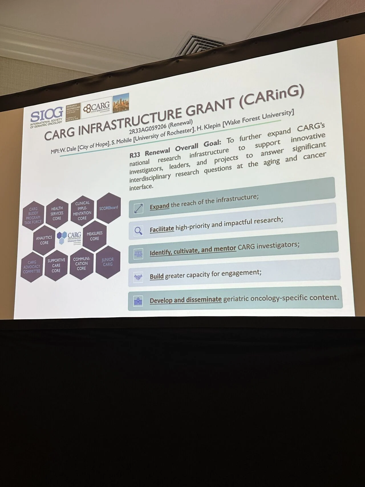 “Opening of the SIOG – International Society of Geriatric Oncology, Cancer and Aging Research Group (CARG) Masterclass in Geriatric Oncology clinical research 3rd edition in Tampa Florida.