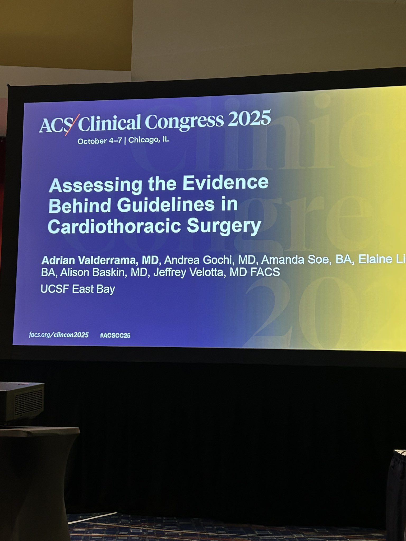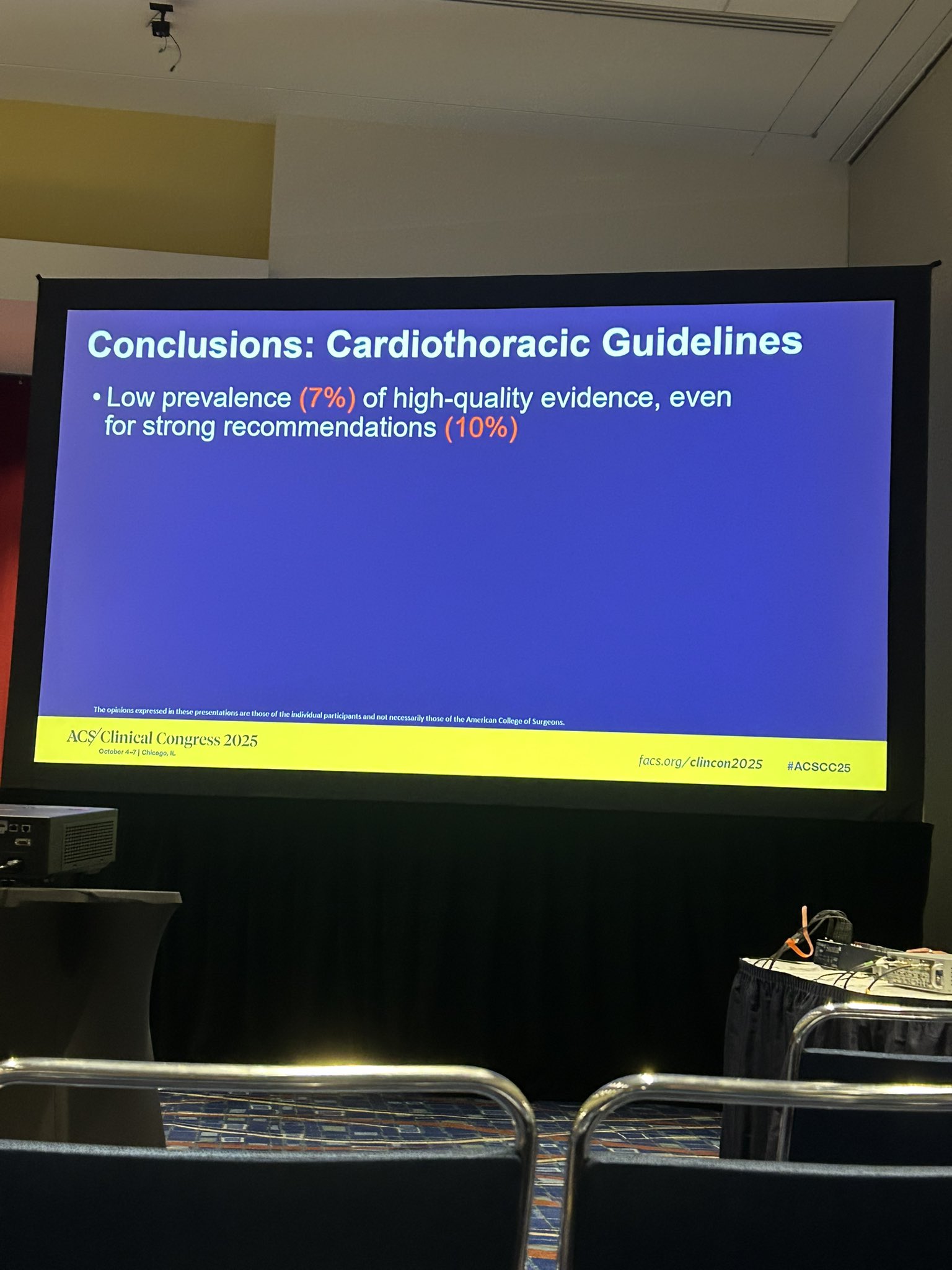 “Great work, Adrian Valderrama, discussing the low amount of high-quality and strong evidence for cardiothoracic surgery. We have work to do in high-quality studies, and we don’t necessarily need RCTs for everything, and we have to innovate.”