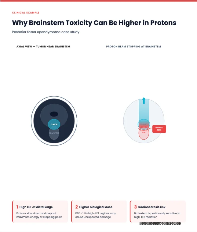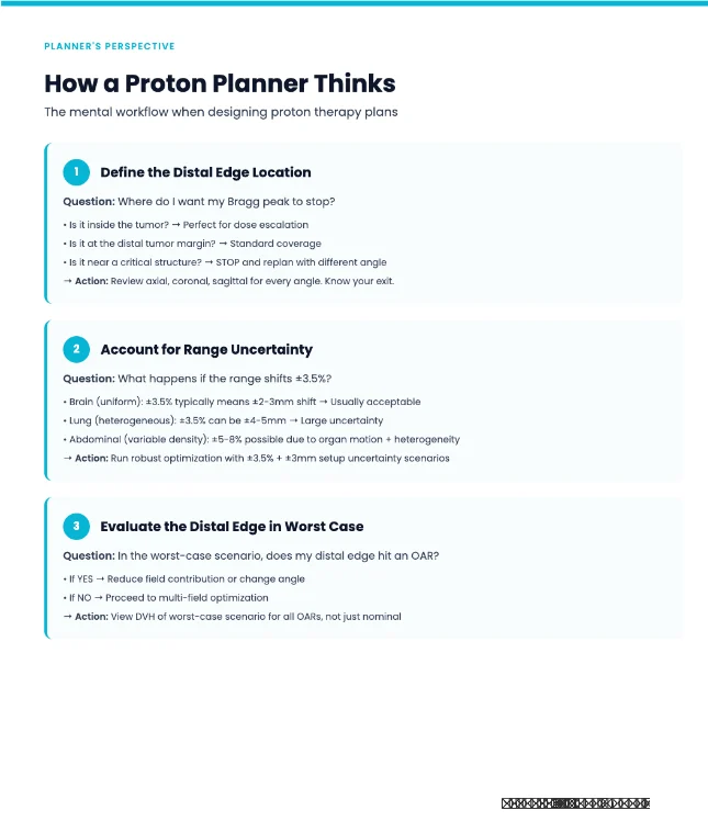 In photon planning, we often think in terms of managing entrance and exit dose, shaping dose distributions around the target while accepting a certain amount of unavoidable dose beyond it. Proton therapy challenges this paradigm. Instead of planning around dose that passes through the patient, we must think in terms of stopping the beam exactly where the biology demands, leveraging the Bragg peak while carefully managing range uncertainties, tissue heterogeneity, and LET effects.