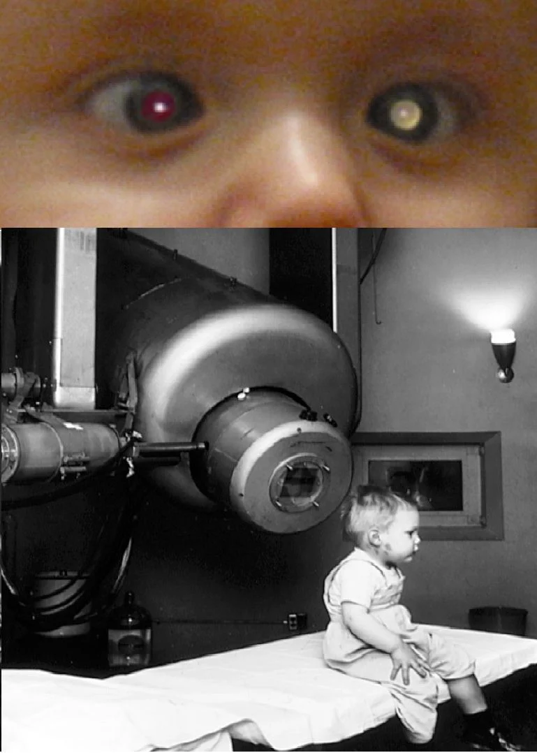 It doesn’t seem fair, but some of us are practically born with cancer. For example, white pupils in a child’s picture can be a sign of a broken Rb gene that causes Retinoblastoma, a white tumor of the retina (image from Wikipedia). The first patient treated with a Linac (high energy X-ray machine) was a child who lost one eye to Rb surgery and doctors wanted to spare vision in his remaining eye that also had a limited Rb tumor.