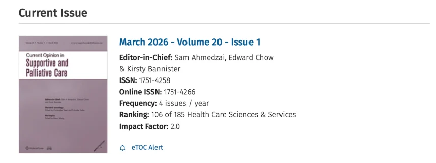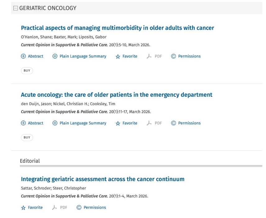 “Current Opinion in Supportive and Palliative Care – Geriatric Oncology edition.