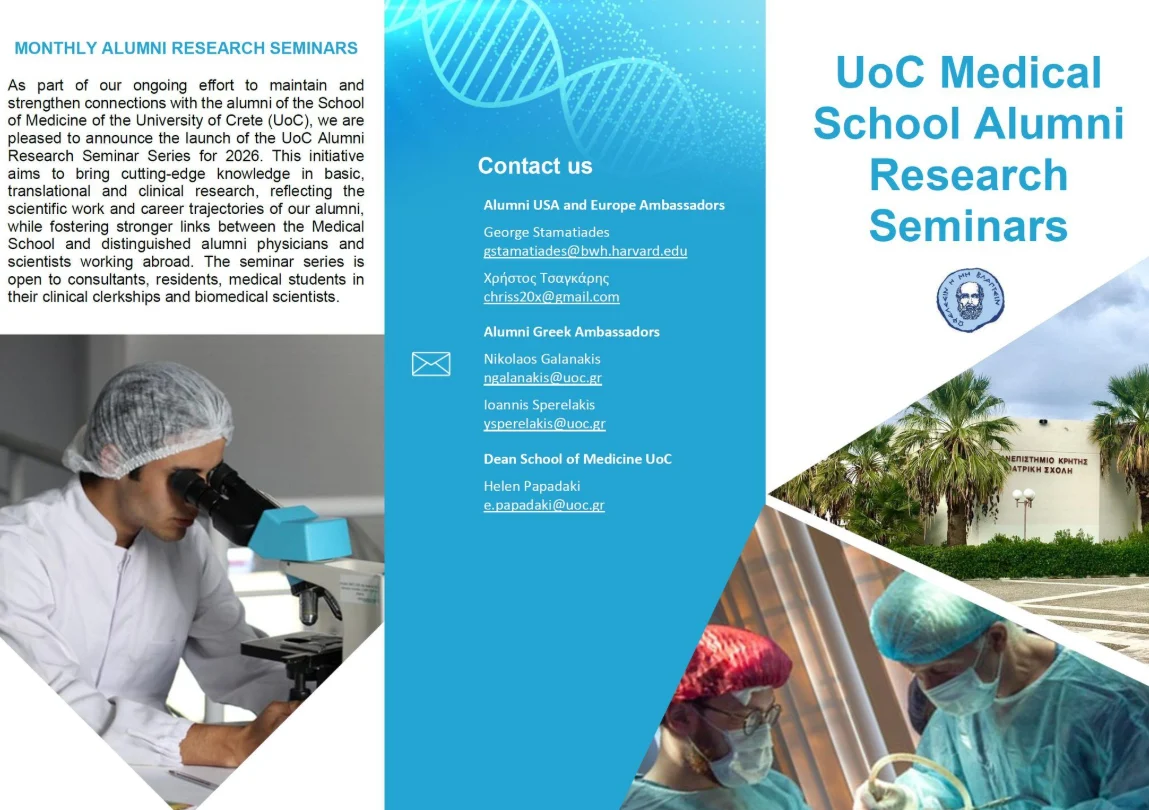 With this spirit in mind, on 18 February we inaugurate the UoC Medical School Alumni Research Seminars, a virtual platform showcasing the scientific work and professional journeys of our alumni across the world. The series aims to strengthen ties between the School and its graduates, foster interdisciplinary dialogue, and create opportunities for mentorship and collaboration across generations and geographies.