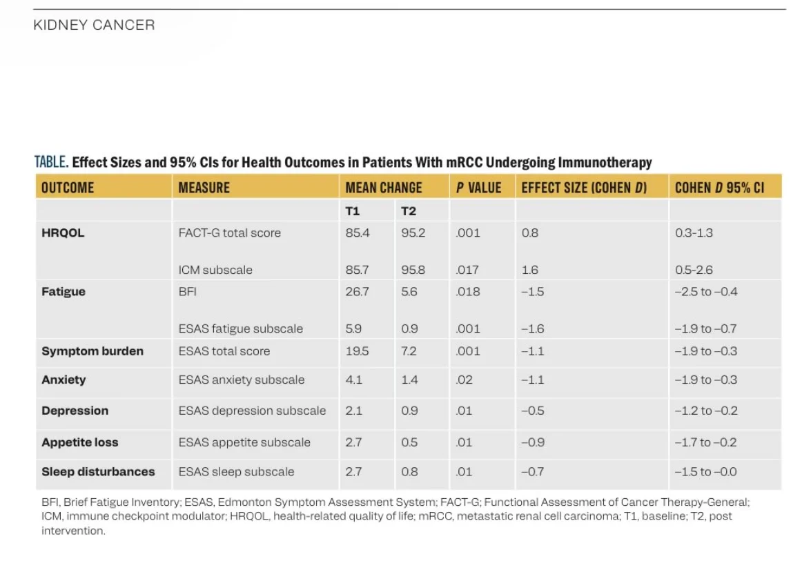 “Our 12wk telehealth-exercise program boosted HRQOL (+9pts), slashed fatigue (-21pts) & improved iRAE (+10pts) in patients w mRCC on ICIs±TKIs”