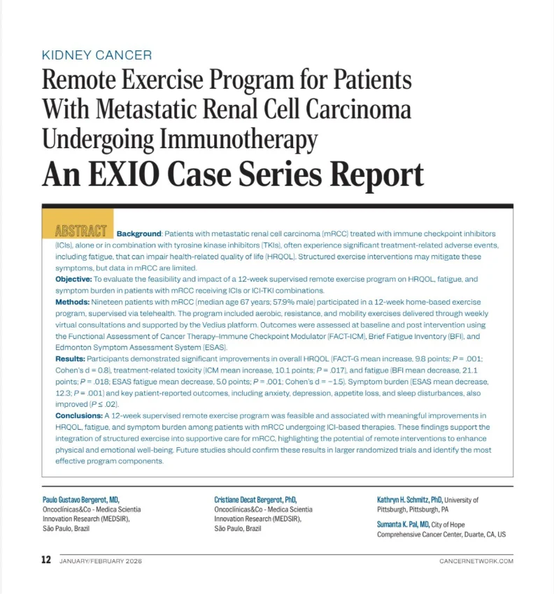 “Fatigue, iRAE, emotional symptoms… common with ICI ± TKI in mRCC This remote exercise program led to meaningful improvements across all these domains Scalable. Feasible. Clinically impactful.”