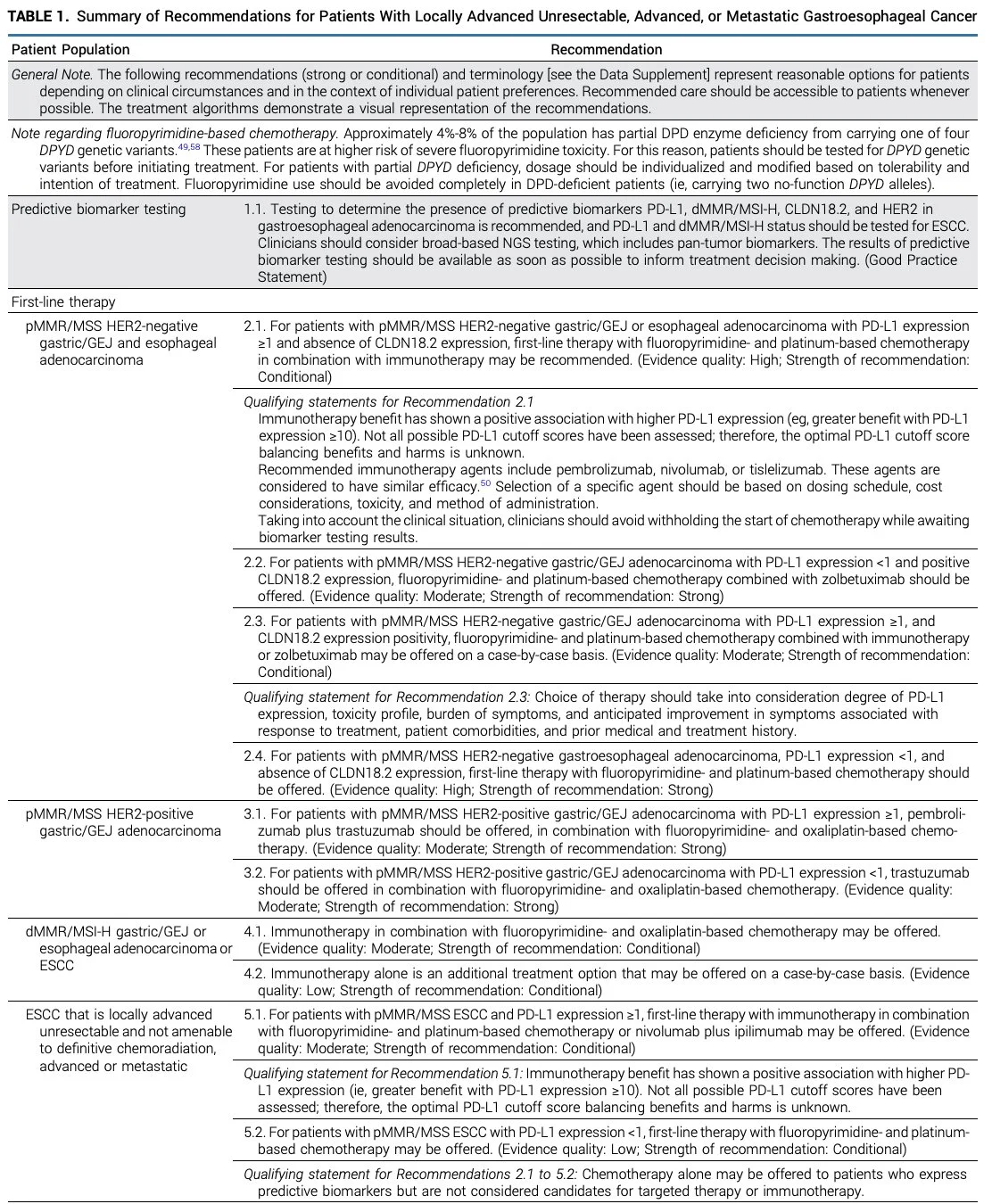Title: Immunotherapy and Targeted Therapy for Advanced Gastroesophageal Cancer: ASCO Guideline Update