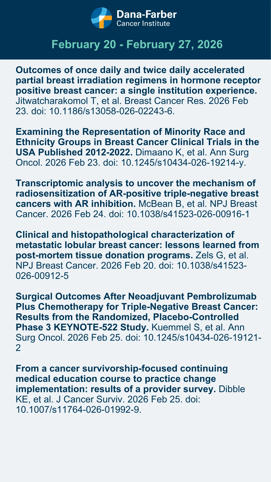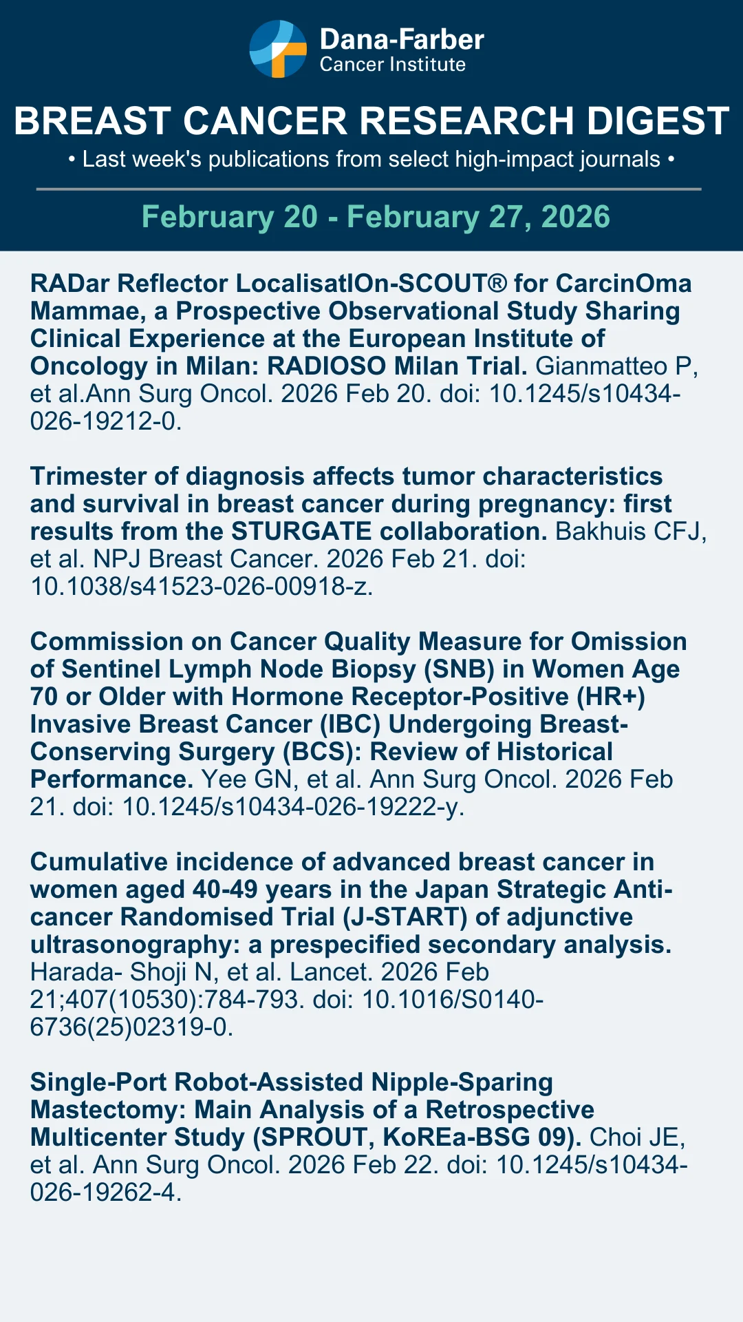 “Check out our most recent Breast Cancer Research Digest-a summary of last week’s publications from select high-impact journals (February 20th- February 27th, 2026).”