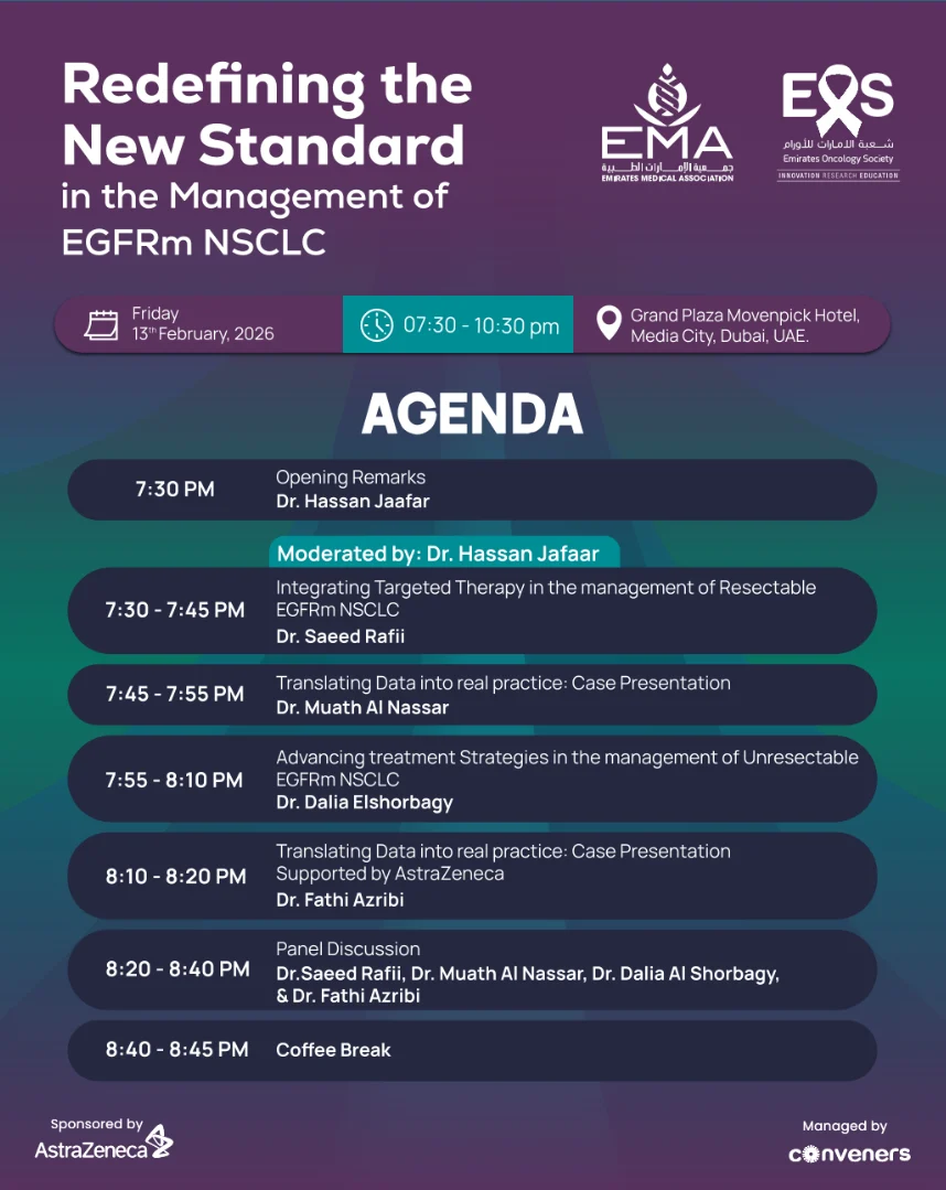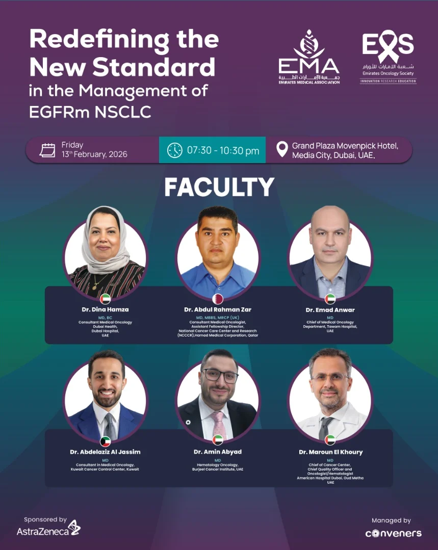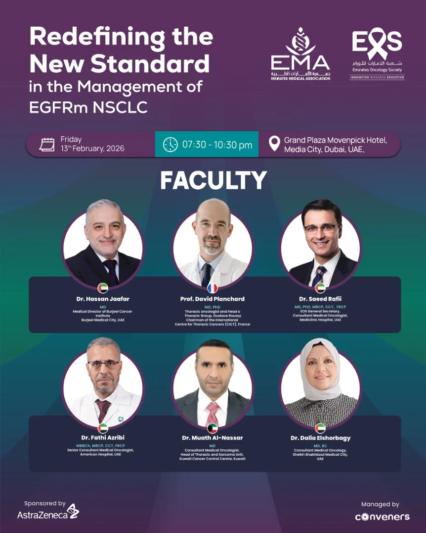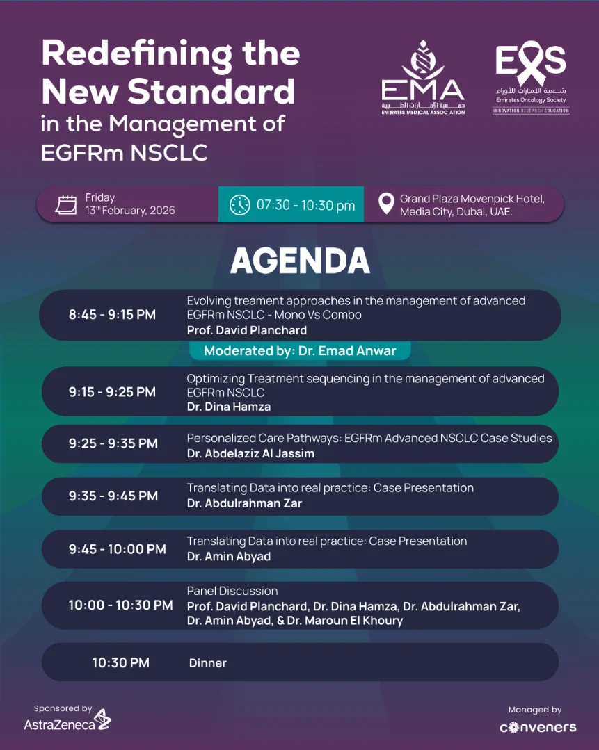 “Many thanks to my UAE colleagues and friends for the invitation EOS, the warm welcome, and the high-quality scientific exchanges on EGFRm NSCLC. New standards like FLAURA2 have set a high bar – a new summit that will be hard to top! Looking forward to the next 10 years of innovation.”