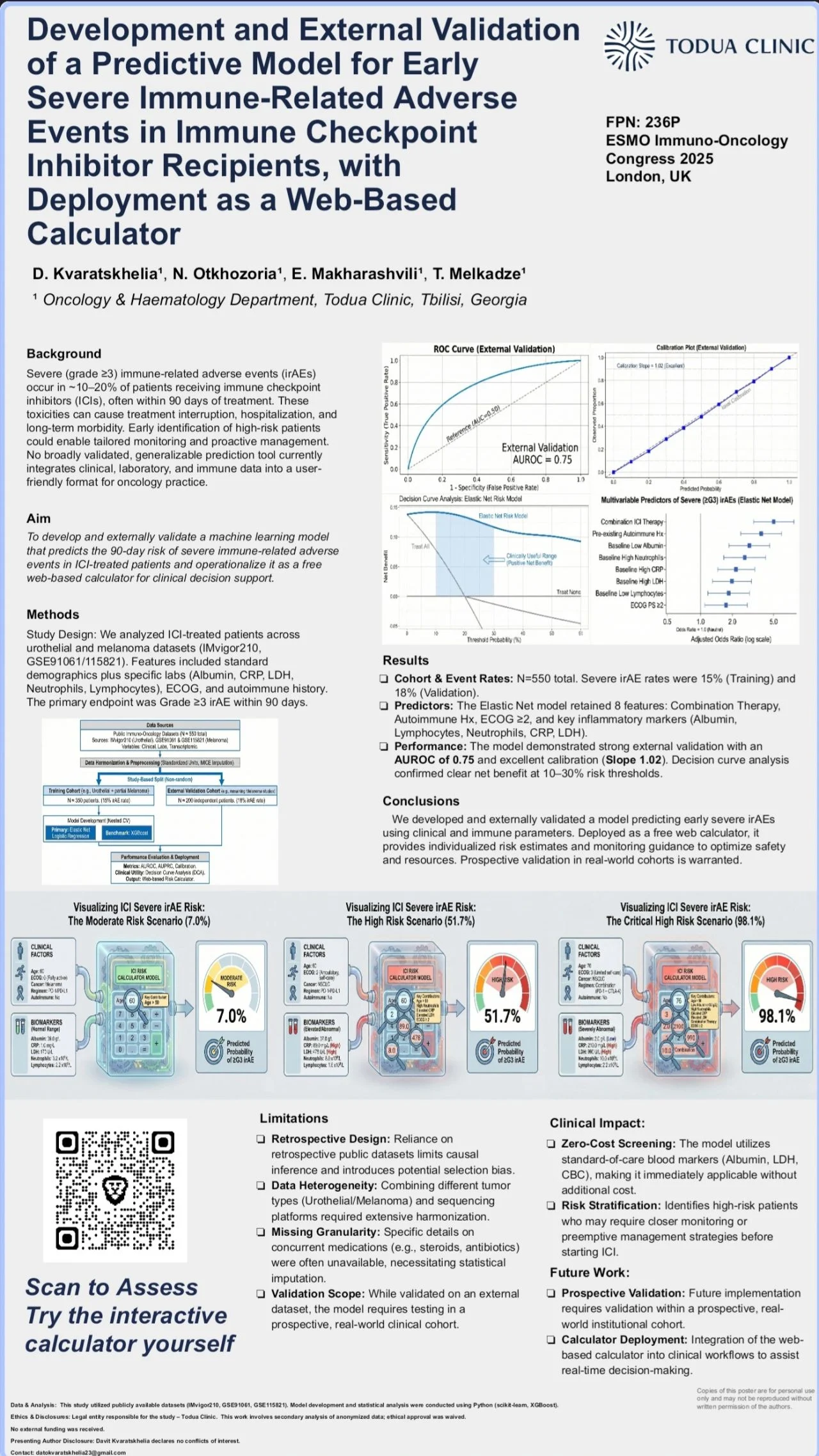 I presented my work on developing and externally validating a model that predicts early severe immune-related adverse events in ICI-treated patients, now deployed as an interactive web-based calculator.
