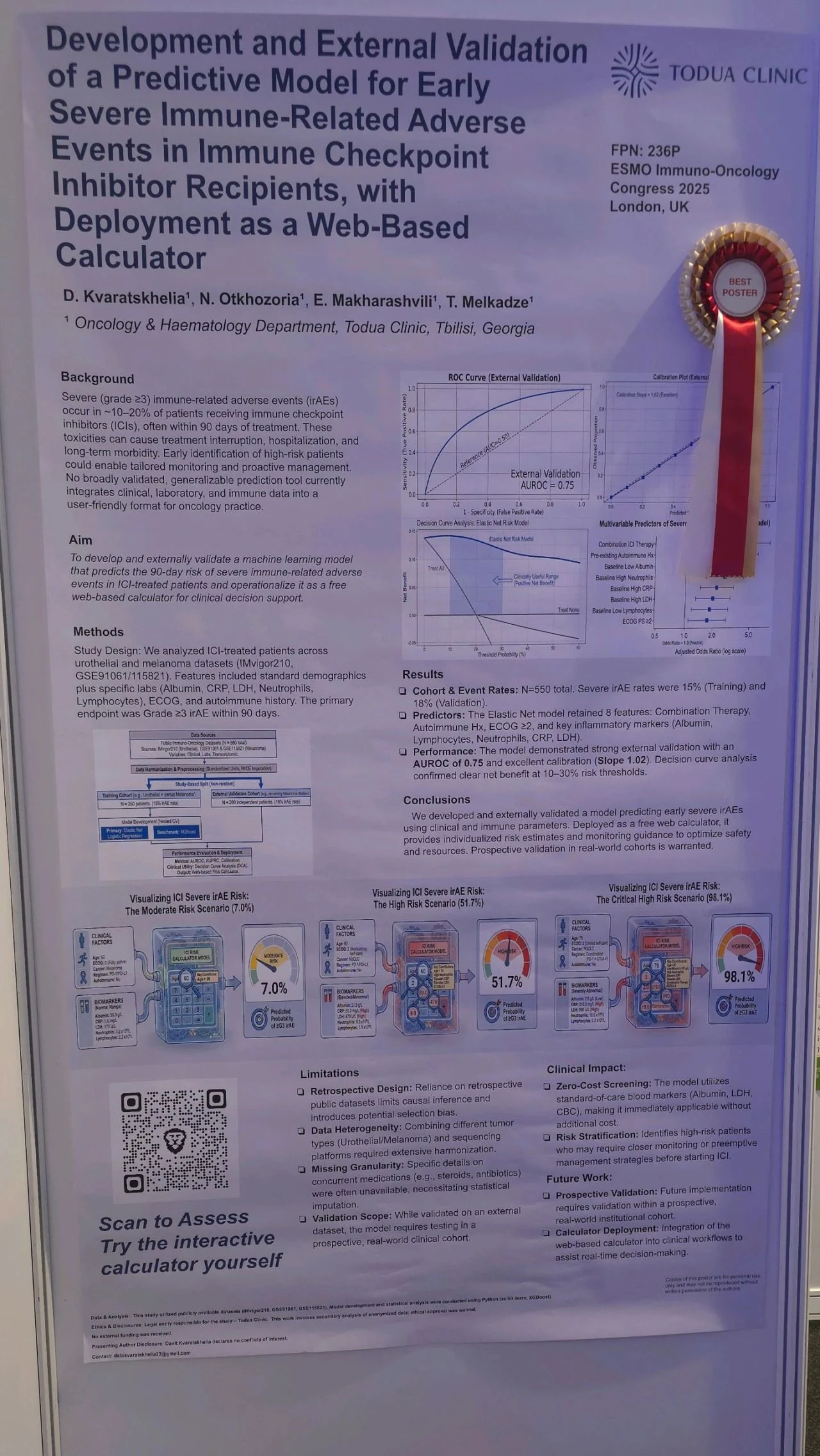 “Honoured to receive the Best Poster Award at ESMO IO 2025!