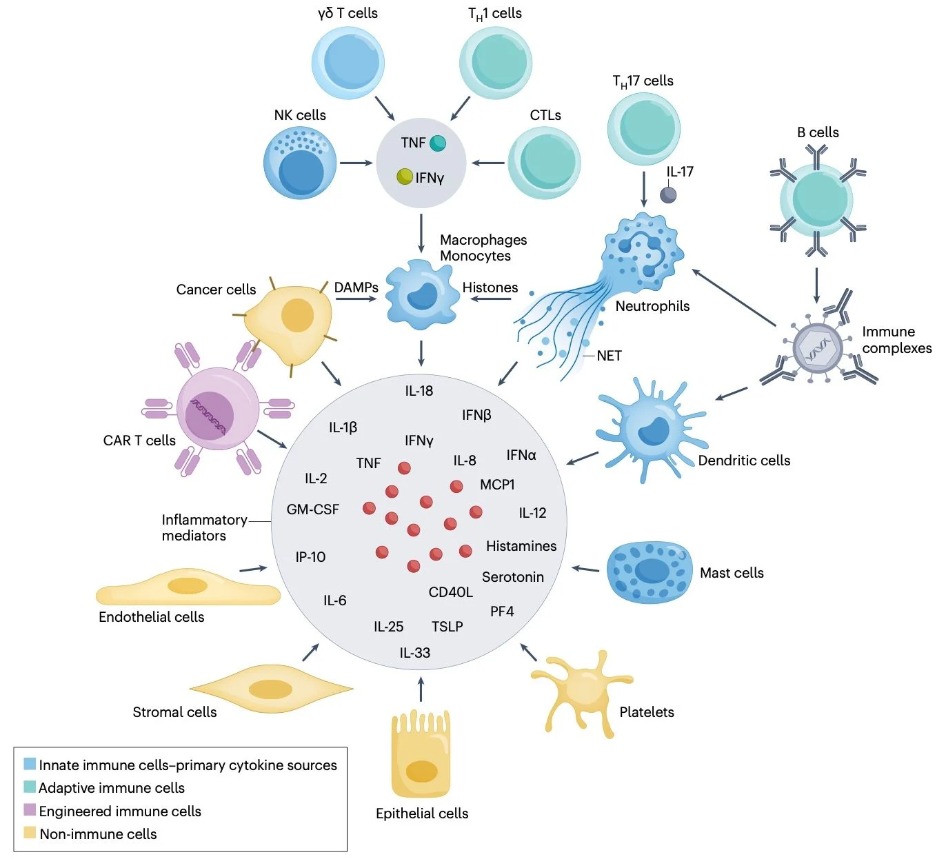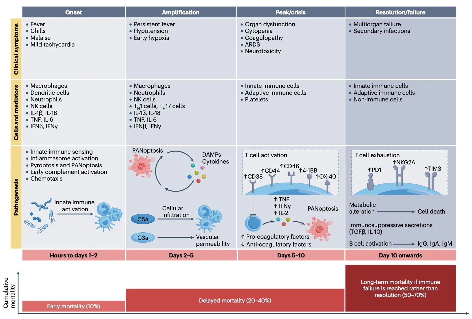 Cytokine storm encompasses hyperinflammatory syndromes driven by excessive immune activation and elevated circulating cytokines, leading to tissue damage, multiorgan dysfunction, and potential lethality.