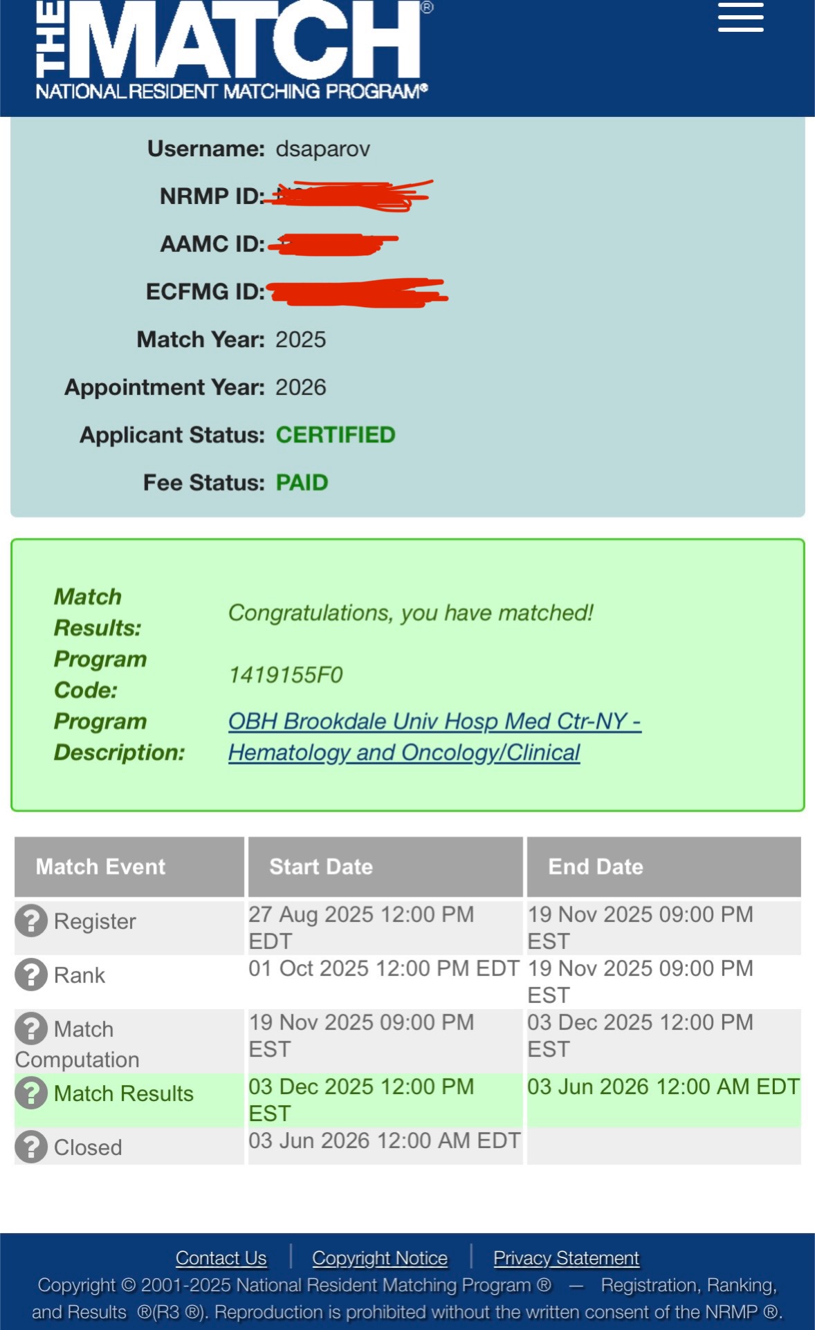 “One of the most meaningful days of my life. I’m grateful to share that I’ve officially matched into Hematology and Medical Oncology.