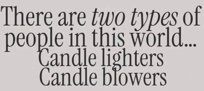 “There are two types of people in this world – candle lighters and candle blowers.”