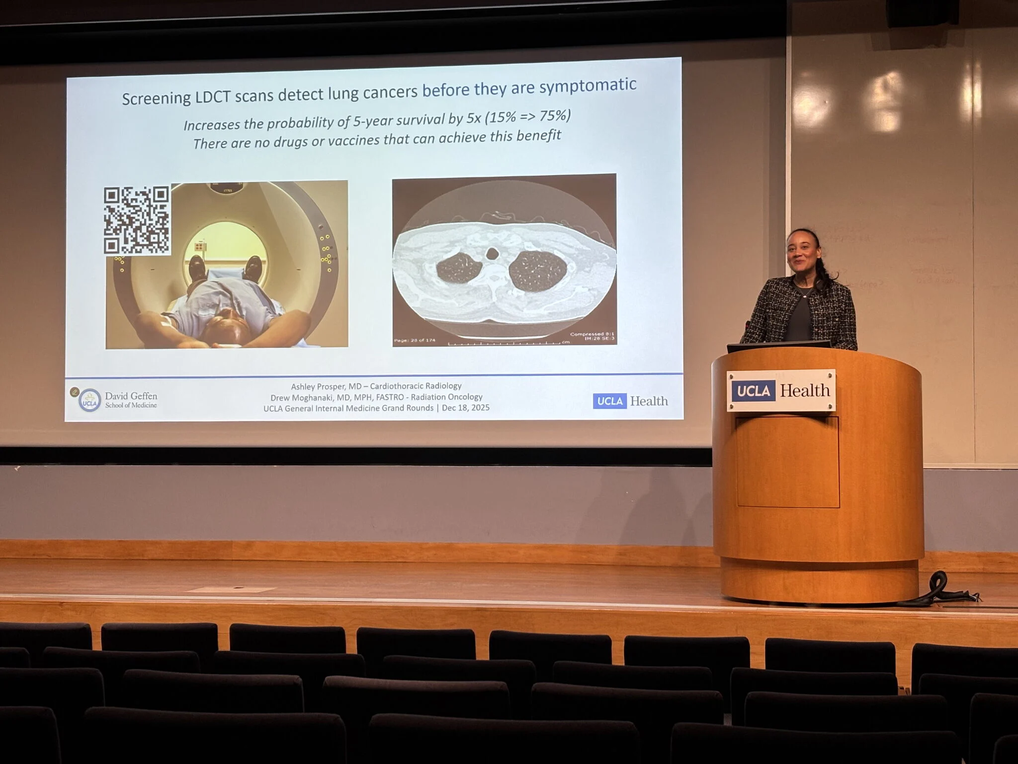 “Last week, the Department of Medicine at UCLA hosted a Grand Rounds lecture titled ‘Lung Cancer Screening: Simpler Than You Think,’ presented by Dr. Ashley Prosper, Chief of Cardiothoracic Imaging.