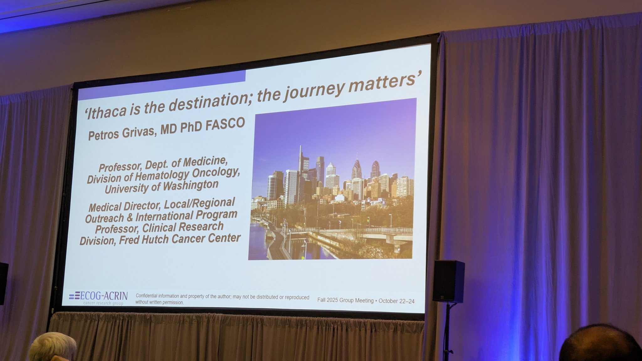 “Petros Grivas delivers a fantastic and inspirational speech at the ECOG-ACRIN Cancer Research Group Fall group meeting for his well-deserved Young Investigator Award!