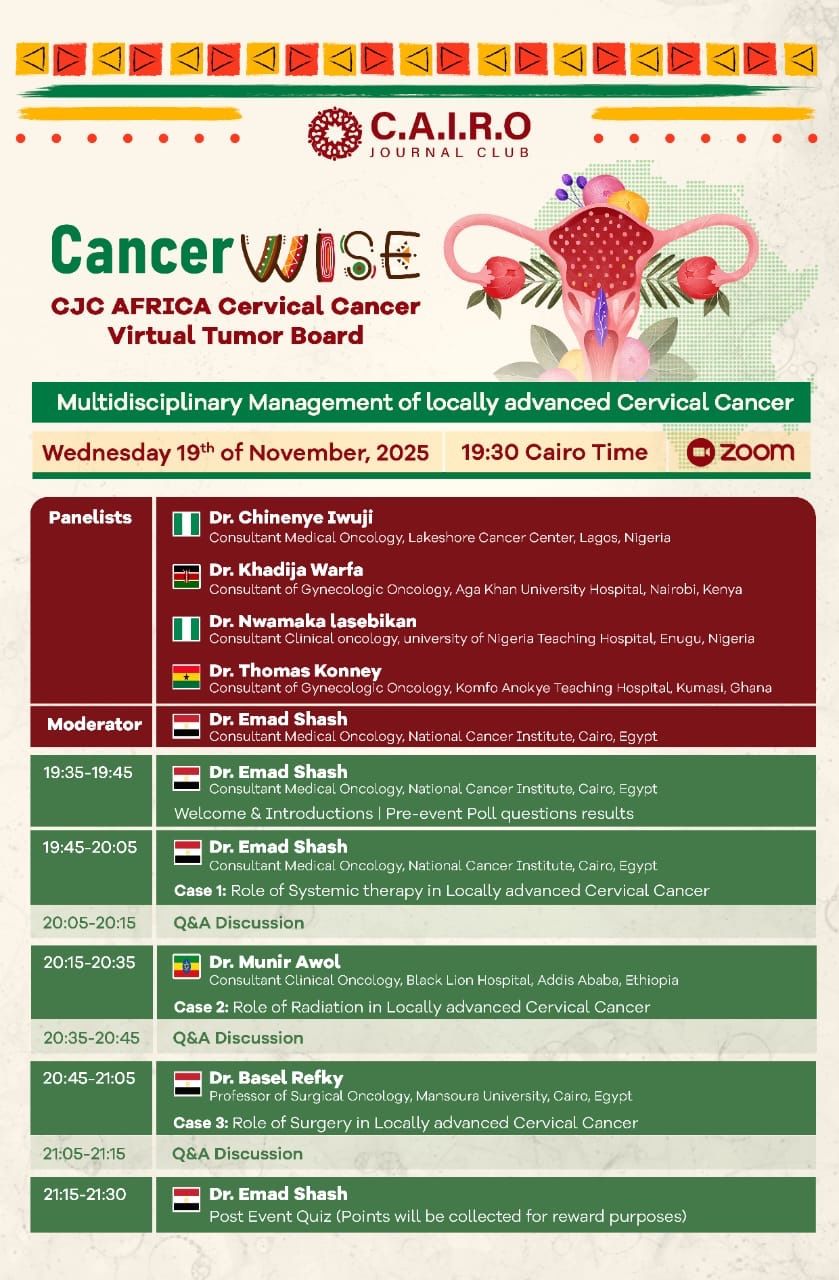 That’s why I’m really happy to be moderating the upcoming CancerWISE – CJC AFRICA Cervical Cancer Virtual Tumor Board on the Multidisciplinary Management of Locally Advanced Cervical Cancer.