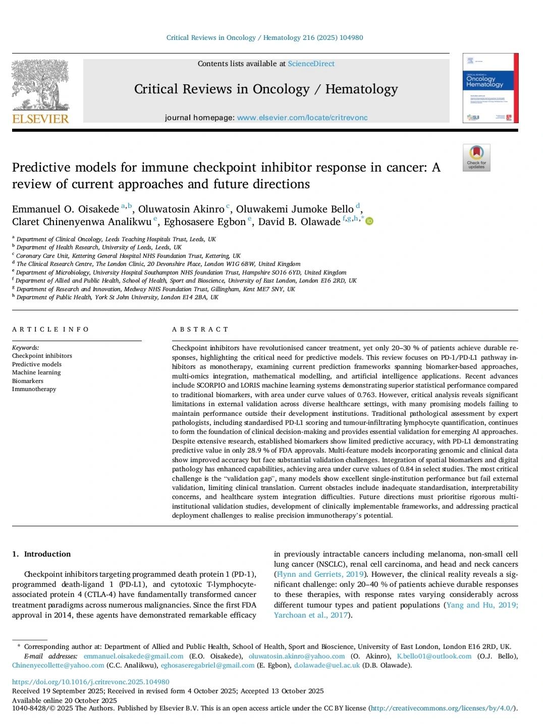 As we continue advancing toward personalised cancer medicine, it’s crucial to fully harness the potential of immune checkpoint inhibitors. In this timely review, we take a deep dive into the current predictive models, including LORIS and SCORPIO and explore how emerging tools are reshaping cancer immunotherapy.