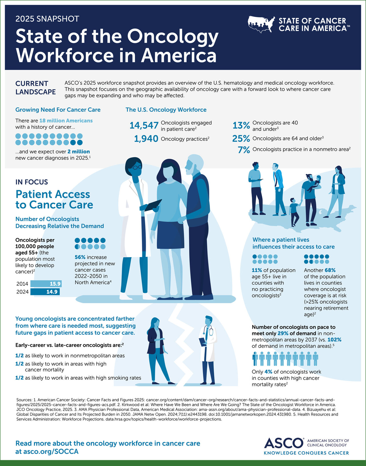 The findings from this report are a call to action for the oncology and greater health care community to address these workforce shortages in the U.S. By collaborating on solutions—such as creating incentives for practices in underserved areas and expanding telehealth services—we can strengthen our health care infrastructure. ASCO is committed to helping build a sustainable oncology workforce that ensures that EVERY PATIENT, EVERY CANCER, EVERY WHERE, has access to high-quality cancer care.