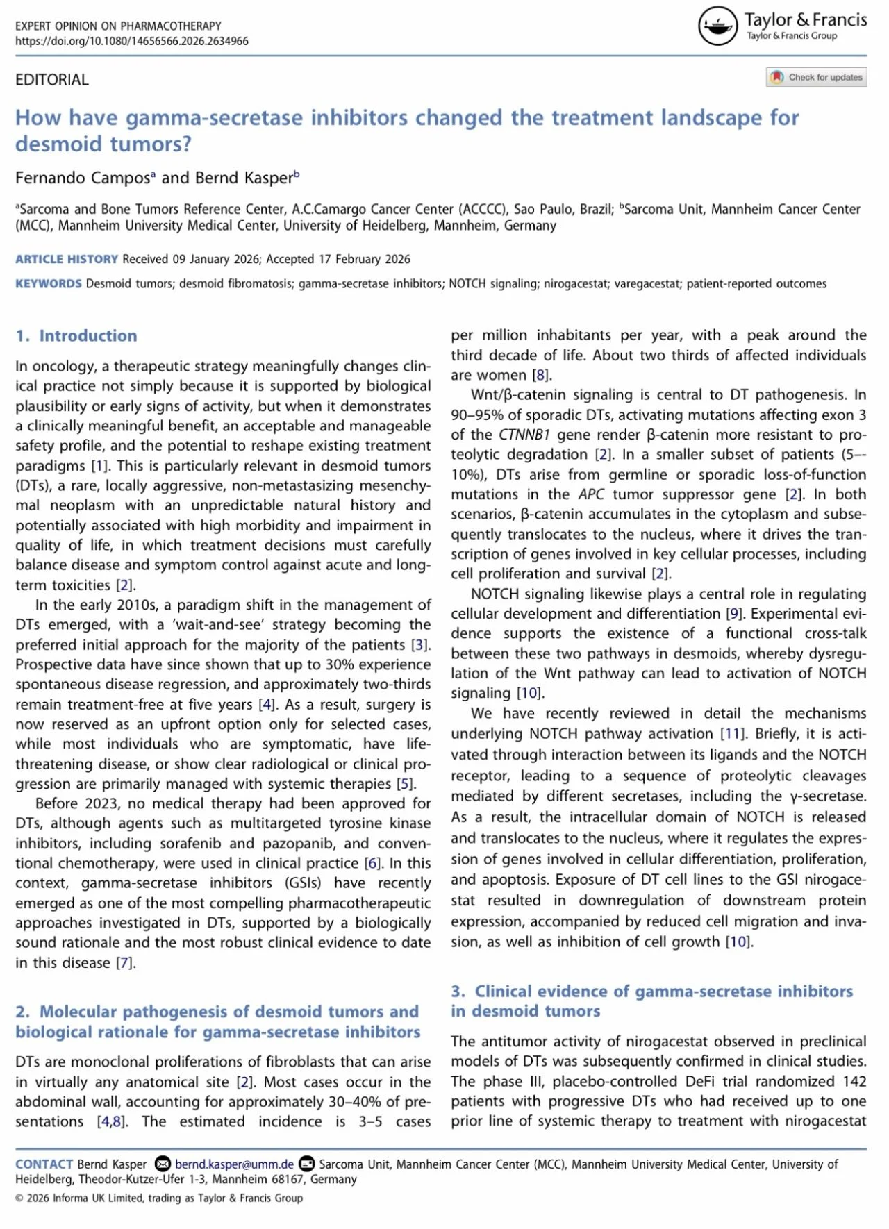 “My first editorial, and an incredible privilege to share this milestone with one of the world’s leading desmoid tumor experts: Bernd Kasper.