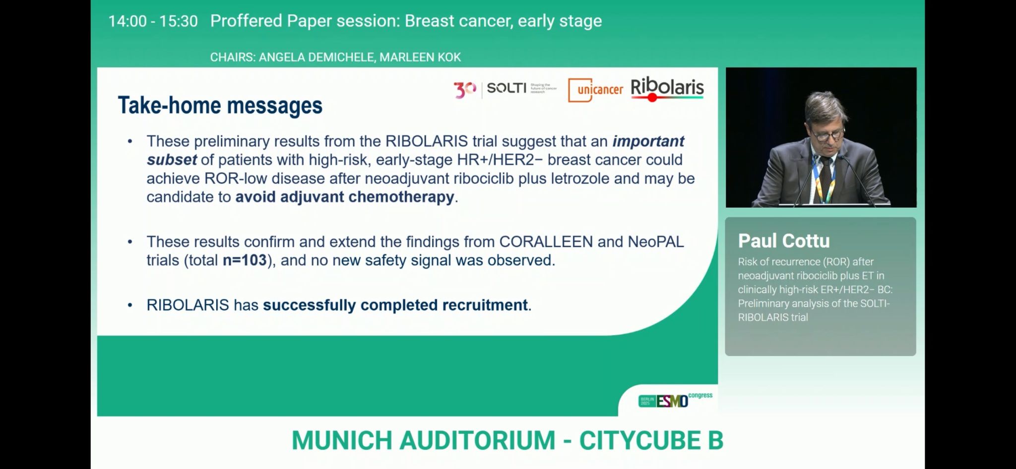 “RIBOLARIS interim analysis results show that neoadjuvant Ribociclib+ET in clinically high-risk patients can ensure that in more than 50% cases a post-surgical Prosigna ROR low is obtained.