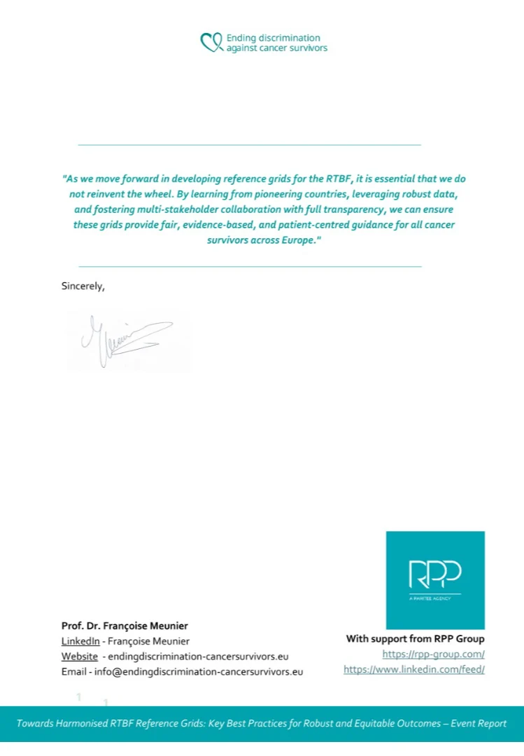 Françoise Meunier, Vice President of the Royal Academy of Medicine of Belgium, and Founder of the European Initiative on Ending Discrimination Against Cancer Survivors, shared a post on LinkedIn:
