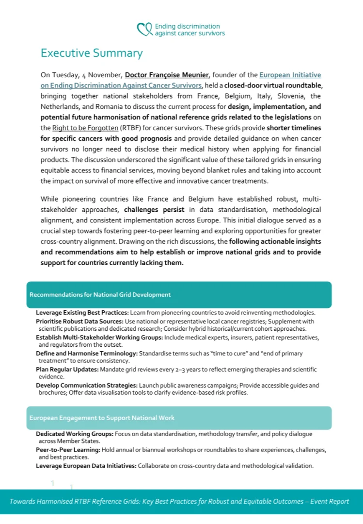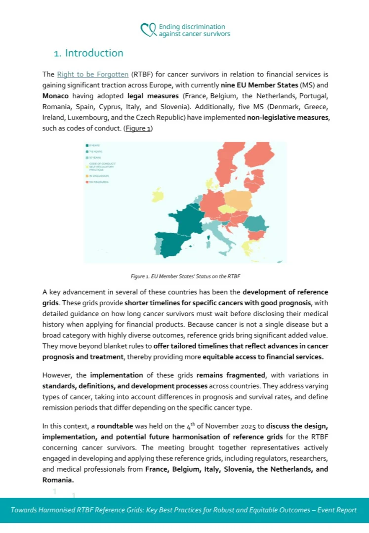 “On 4 November 2025, I hosted a closed-door virtual roundtable bringing together stakeholders from France, Belgium, Italy, Slovenia, the Netherlands, and Romania. We discussed the current process for design, implementation, and potential future harmonisation of national reference grids related to the legislations on the Right To Be Forgotten for cancer survivors.