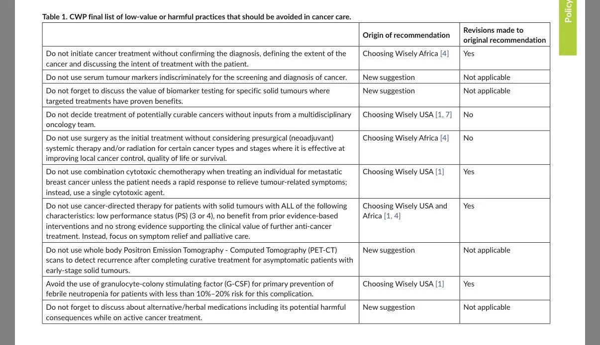Title: Choosing Wisely Philippines: ten low-value or harmful practices that should be avoided in cancer care