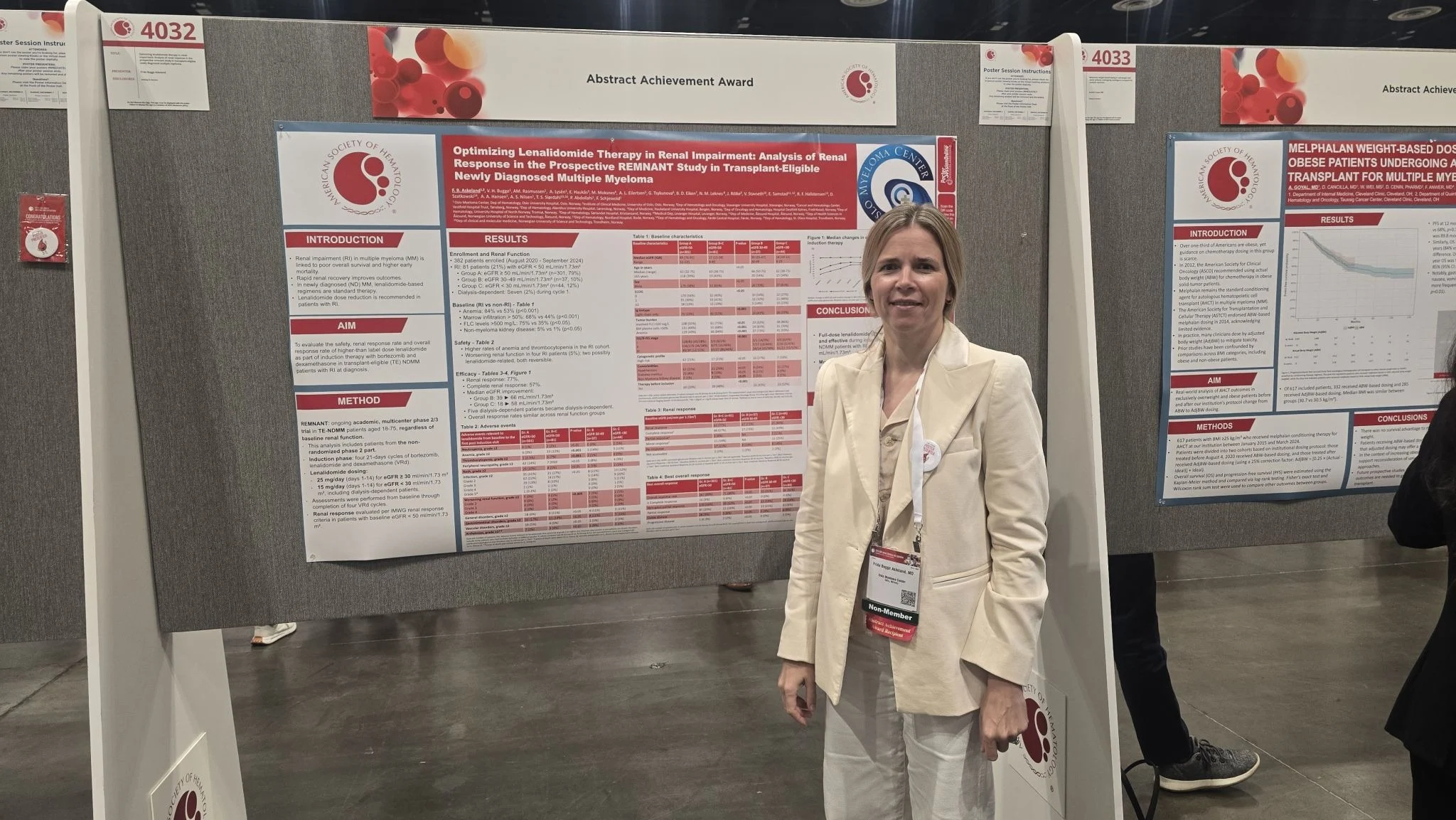 Frida Bugge Askeland received an Abstract Achievement Award for a REMNANT poster; Thorstein Boxaspen (unfortunately not present) first author debut presentation; Fredrik Schjesvold chair at the Clinical and Epidemiological oral abstract session.”