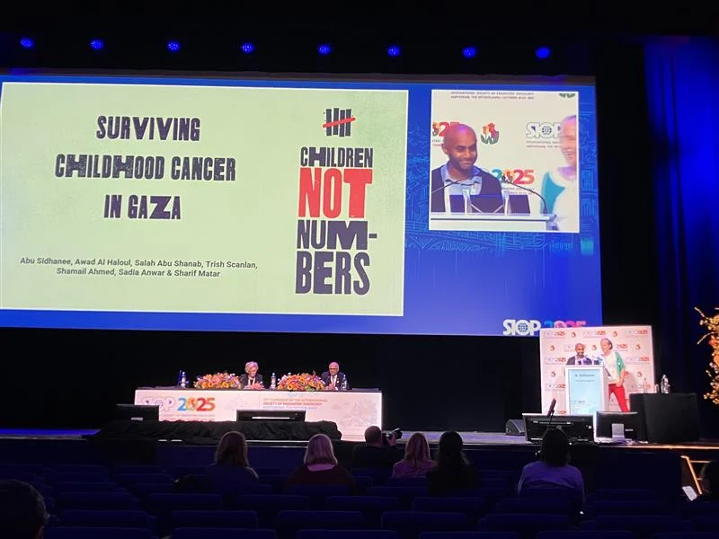 At the annual International Society of Paediatric Oncology (SIOP) Congress in Amsterdam, Maite Gorostegui (a paediatric oncologist from Barcelona, Spain) and I were fortunate to attend the SIOP Award Session, which included a presentation, “Surviving childhood cancer in Gaza: the experience of the NGO Children Not Numbers”. This was presented by a good friend, Abu Sidhanee (paediatric oncology physiotherapist) and Trish Scanlan (paediatric oncologist).