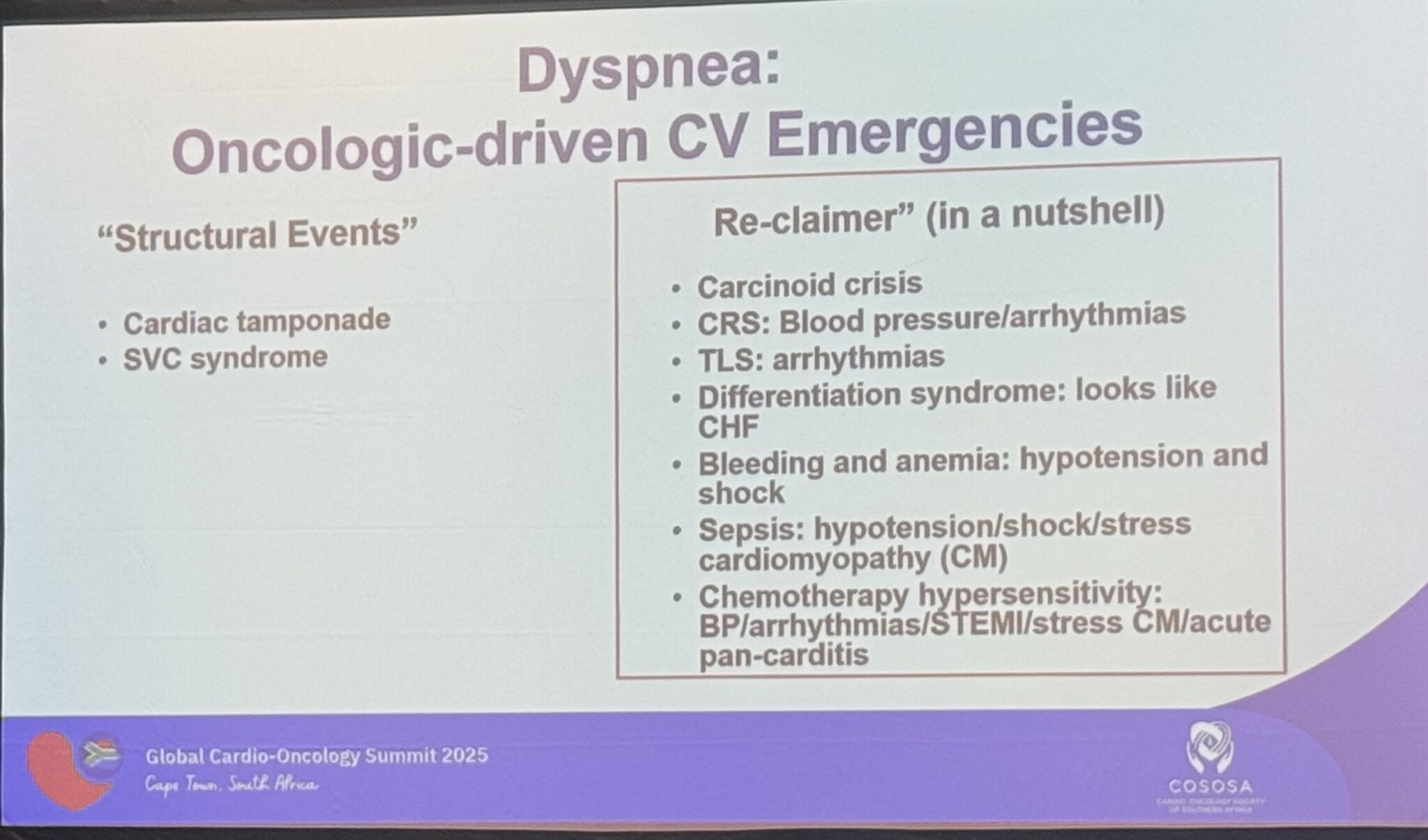 “GCOS25 Day 2 Session 1: Acute Cardiovascular Emergencies in Cancer Patients. Where do they Present and How are they Managed?