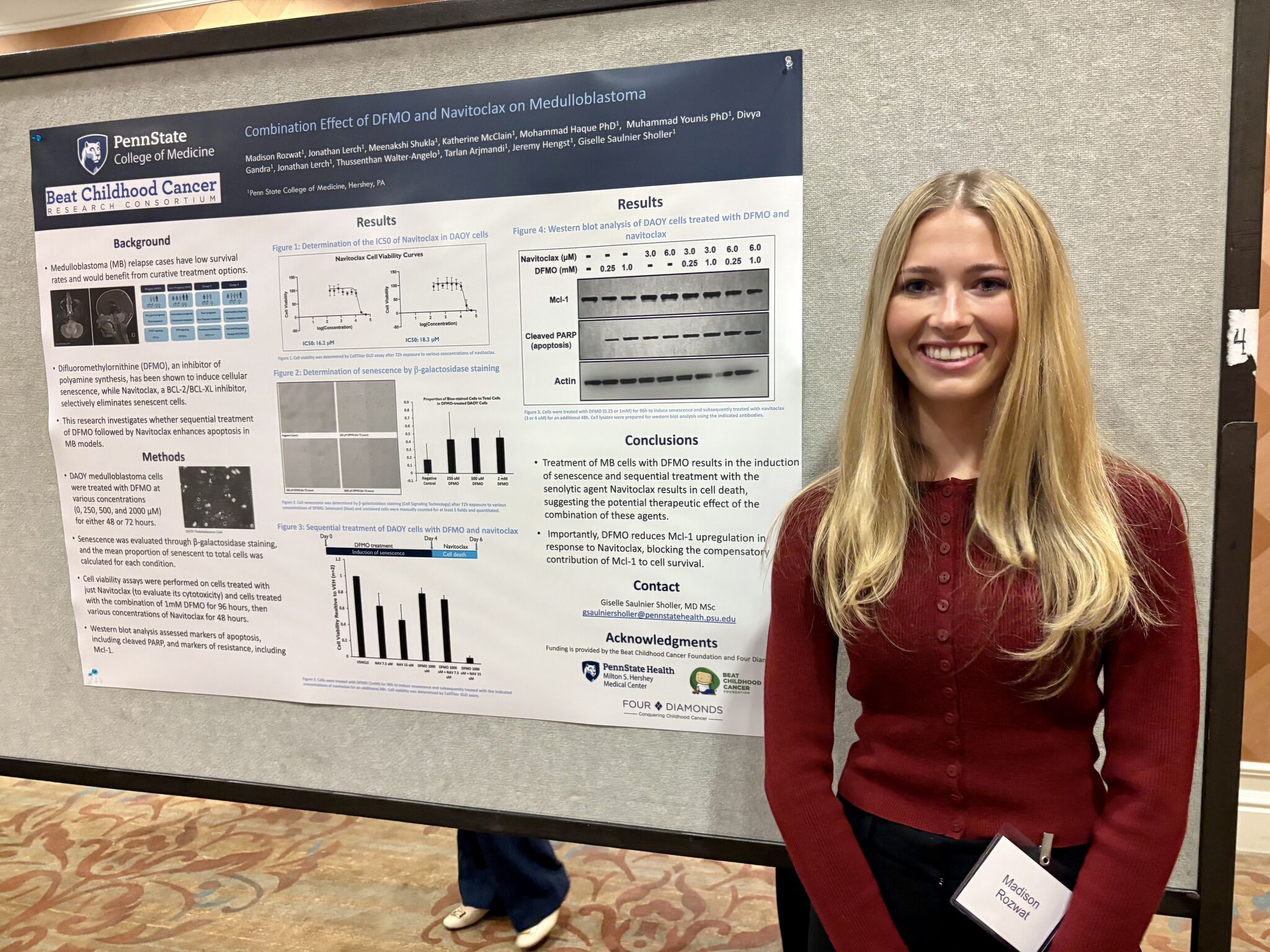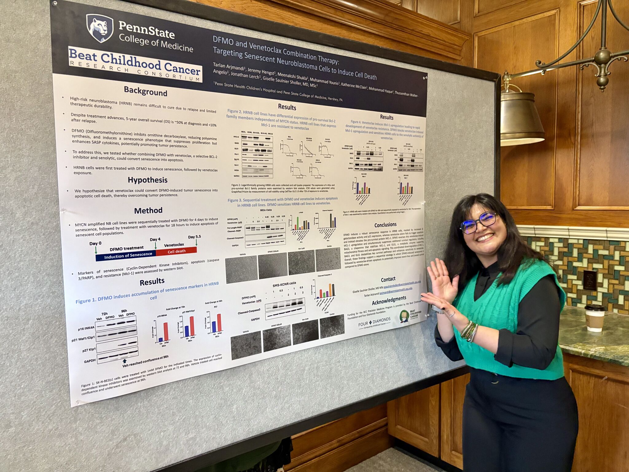 “Feeling grateful to be part of the Sholler Lab and to learn from such an inspiring team. Thank you, Giselle Sholler, for creating such a supportive and motivating environment. It was an honor to present my poster at Pediatric Research Day and to learn from so many brilliant scientists. Excited to keep growing and contributing to our neuroblastoma work.”