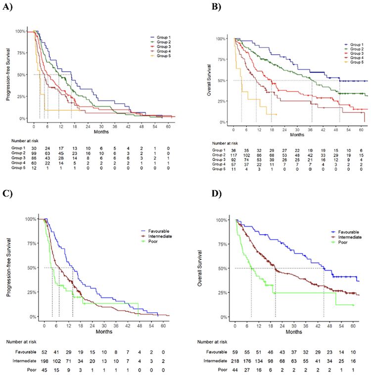 - Median OS ranges from 50 to 3.7 months across groups