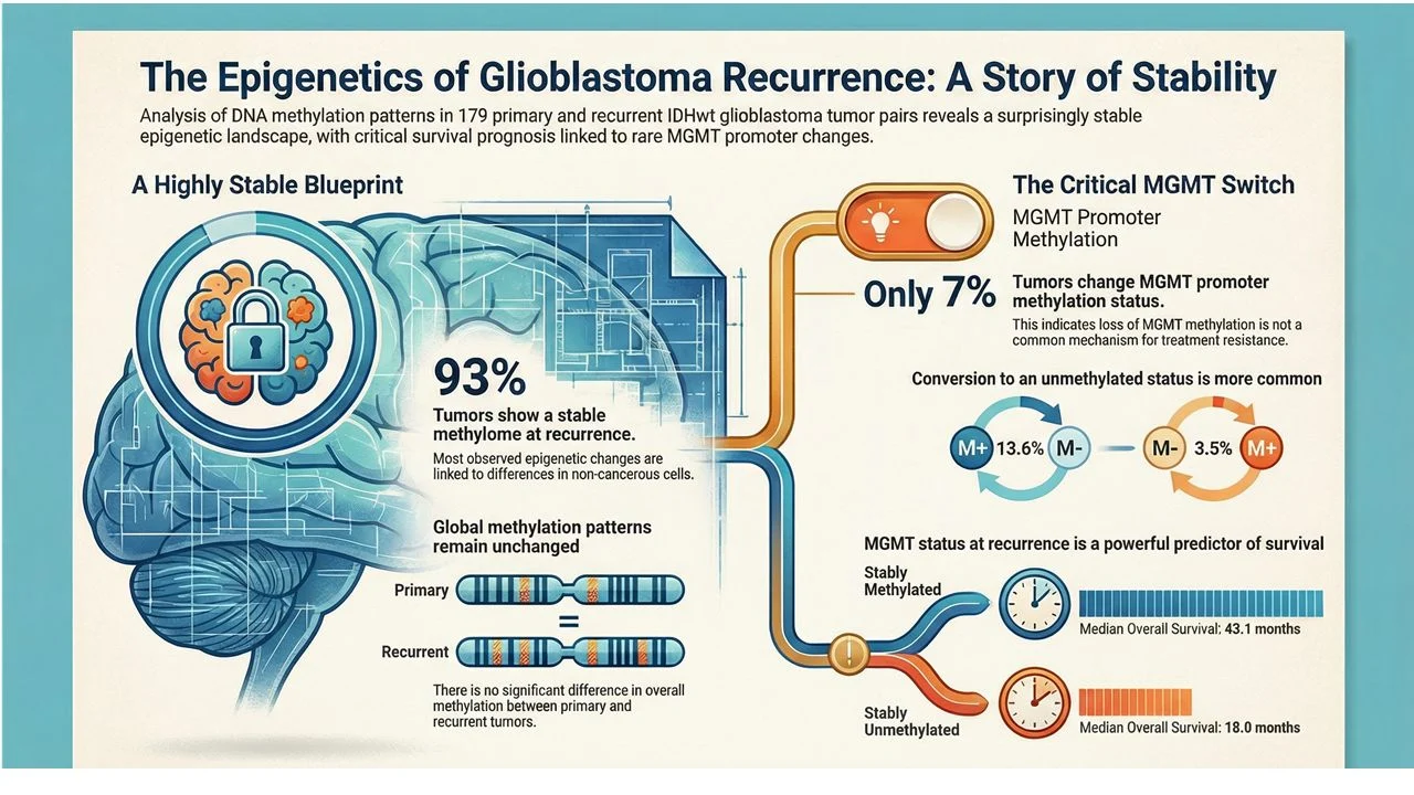 - ~93% of tumors retain the same MGMT status from diagnosis to recurrence