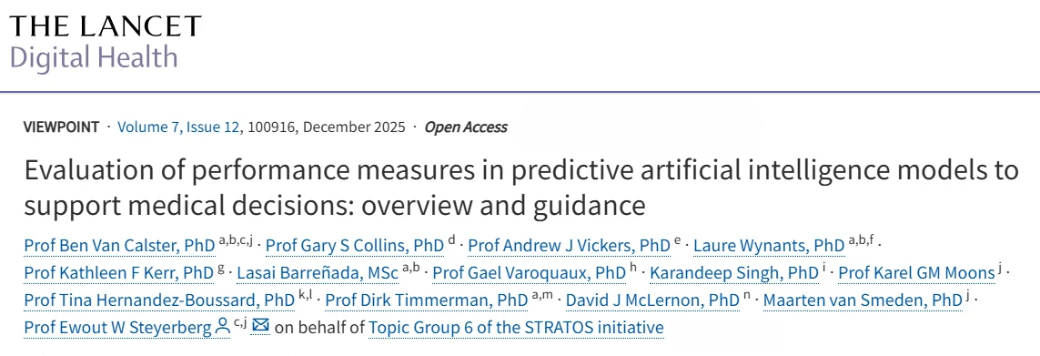 Authors: Ben Van Calster, Gary Collins, Andrew Vickers, Laure Wynants, Kathleen Kerr, Lasai Barreñada, Gael Varoquaux, Karandeep Singh, Karel Moons, Tina Hernandez-Boussard, Dirk Timmerman, David McLernon, Maarten van Smeden, Ewout Steyerberg