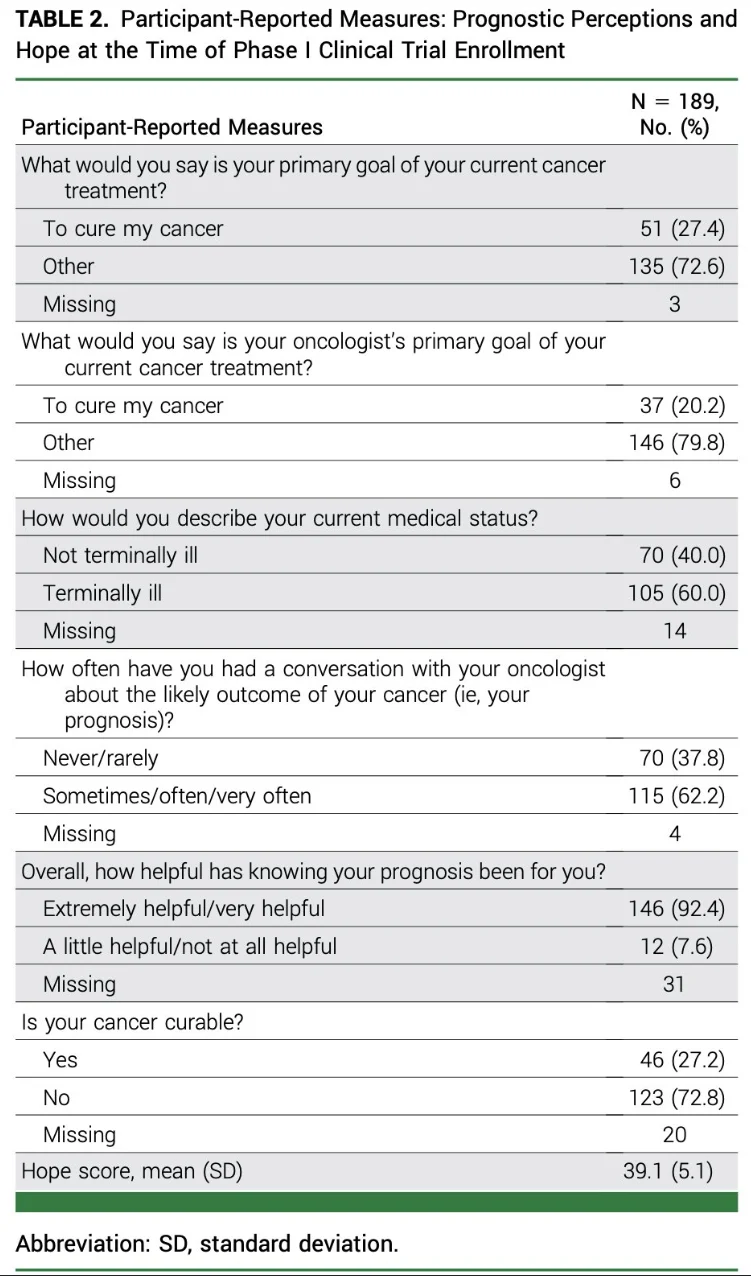 1. What do people with advanced cancer participating in early-phase clinical trials (ie, Phase 1) understand about their prognosis?